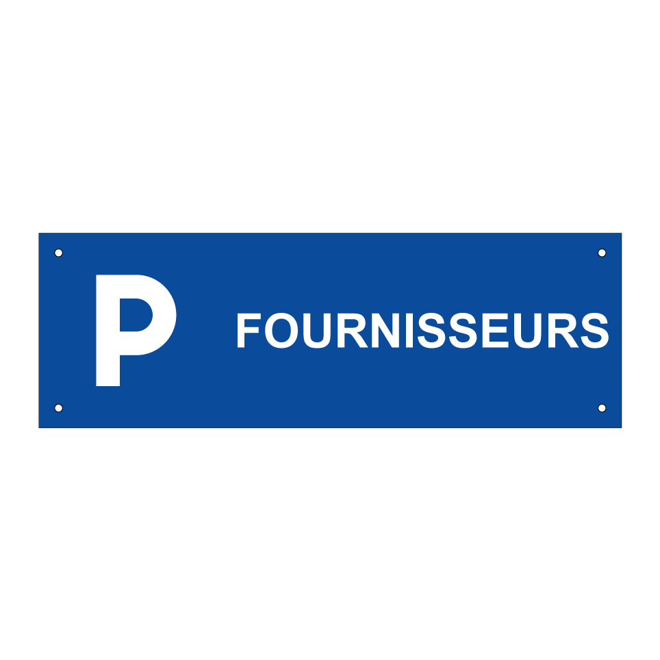Panneau de stationnement avec le texte : "Fournisseurs" et une symbolique claire.