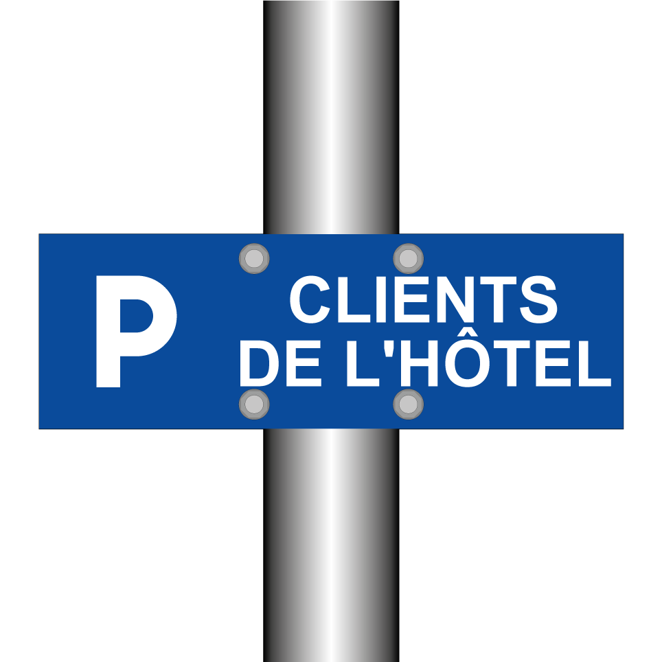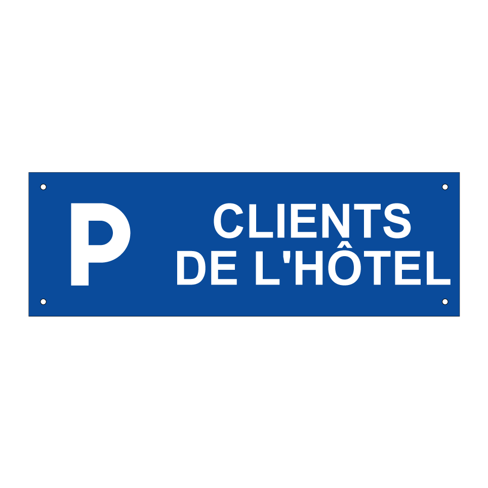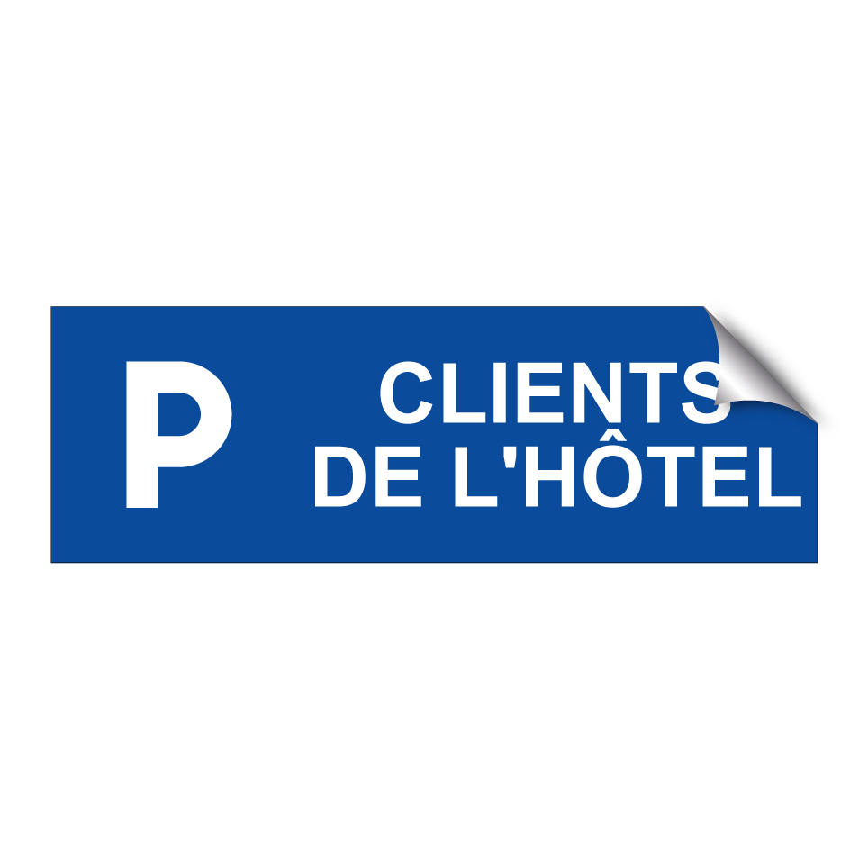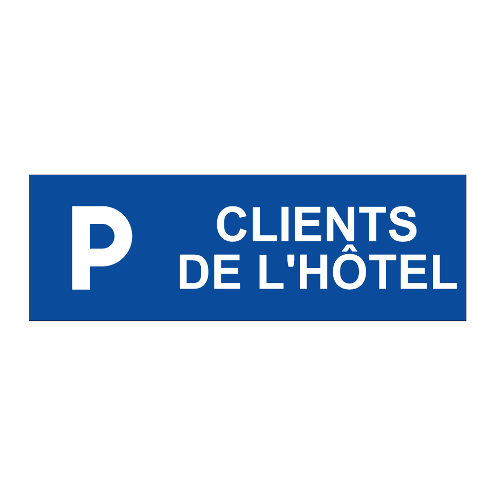Panneau de stationnement avec le texte : "Clients de l'hôtel" et une symbolique claire.