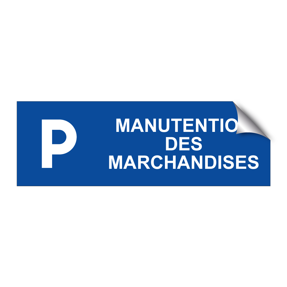 Panneau de stationnement avec le texte : "Manutention des marchandises" et une symbolique claire.