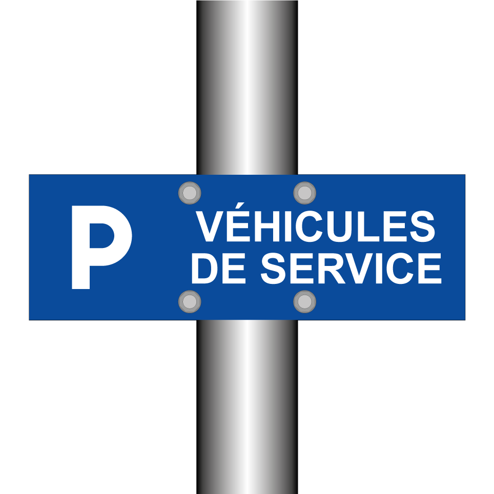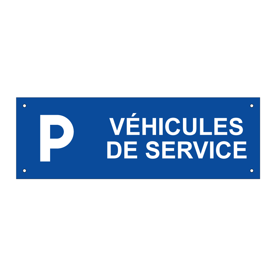 Panneau de stationnement avec le texte : "Véhicules de service" et une symbolique claire.