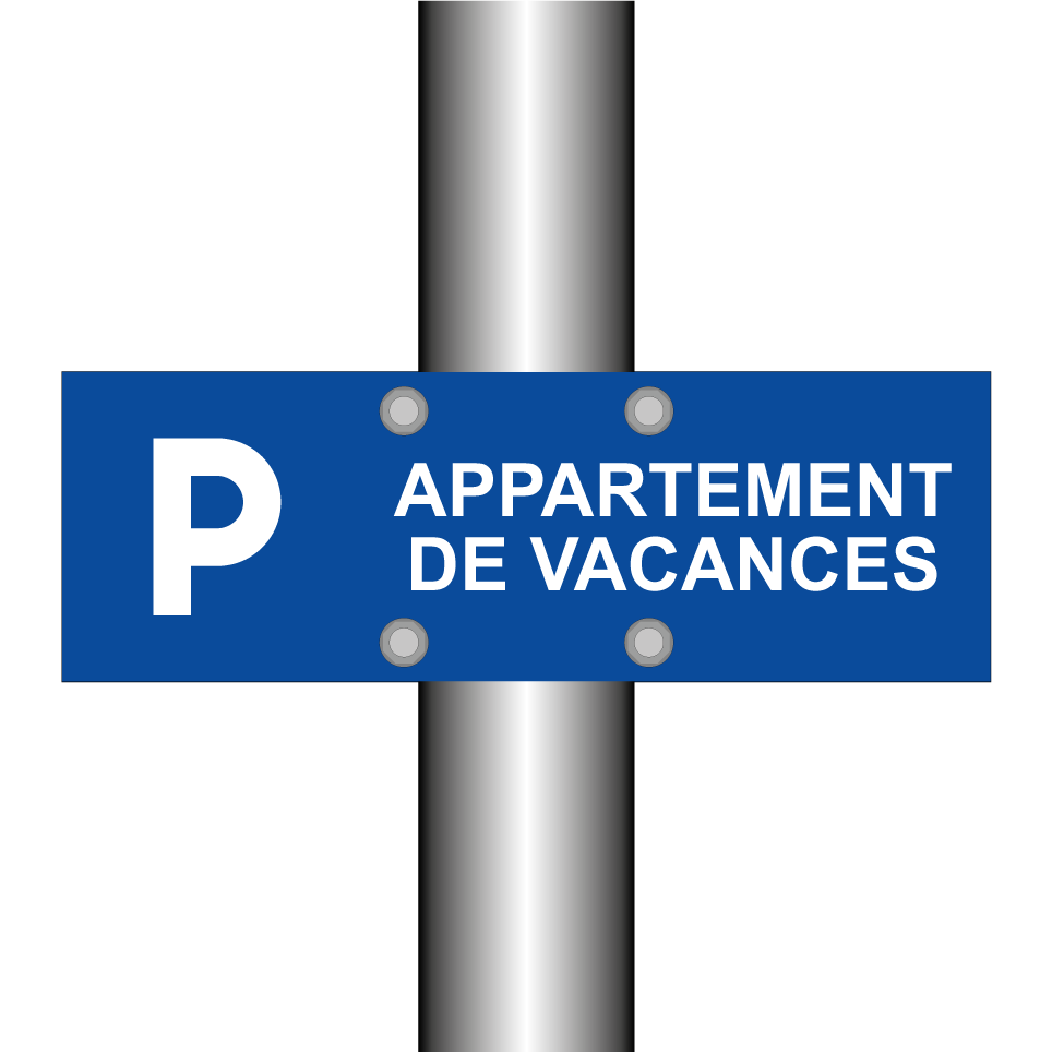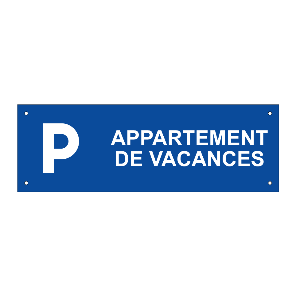 Panneau de stationnement avec le texte : "Appartement de vacances" et une symbolique claire.
