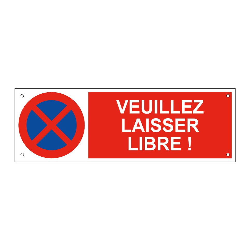 Panneau d'interdiction de stationner avec le texte : "Veuillez laisser libre !" et une symbolique claire.