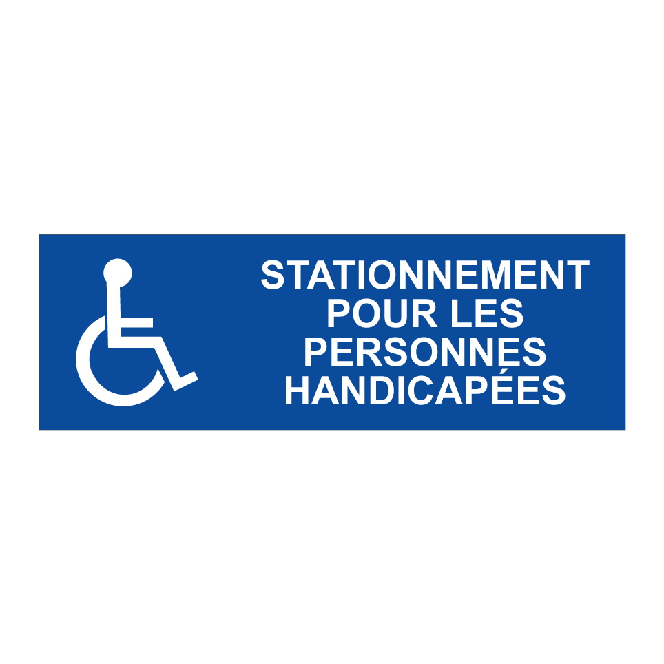 Panneau de stationnement avec le texte : "Stationnement pour les personnes handicapées" et une symbolique claire.