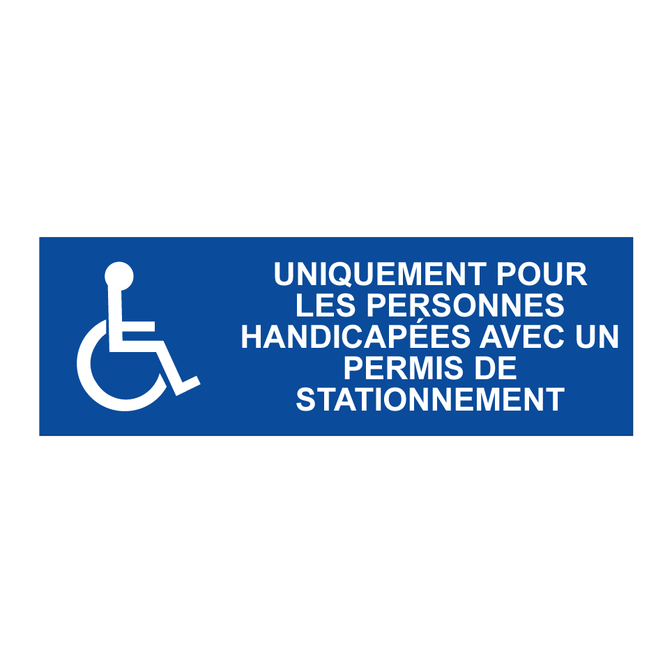 Panneau de stationnement avec le texte : "Uniquement pour les personnes handicapées avec un permis de stationnement" et une symbolique claire.