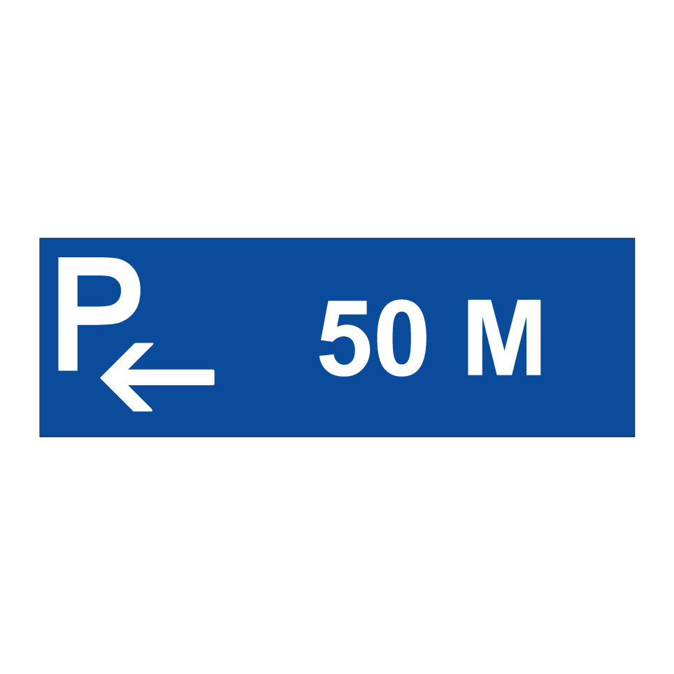 Panneau de stationnement avec le texte : "50 m" et une symbolique claire.