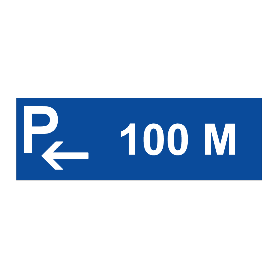 Panneau de stationnement avec le texte : "100 m" et une symbolique claire.