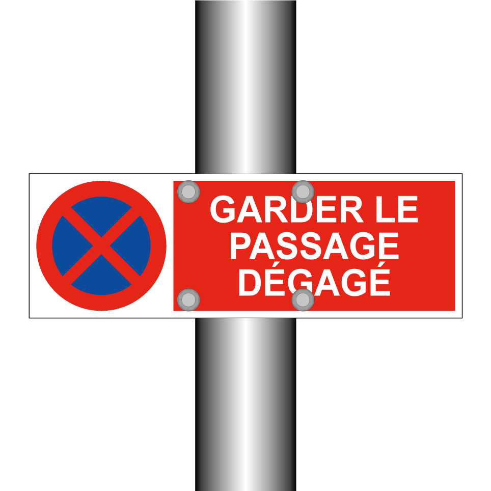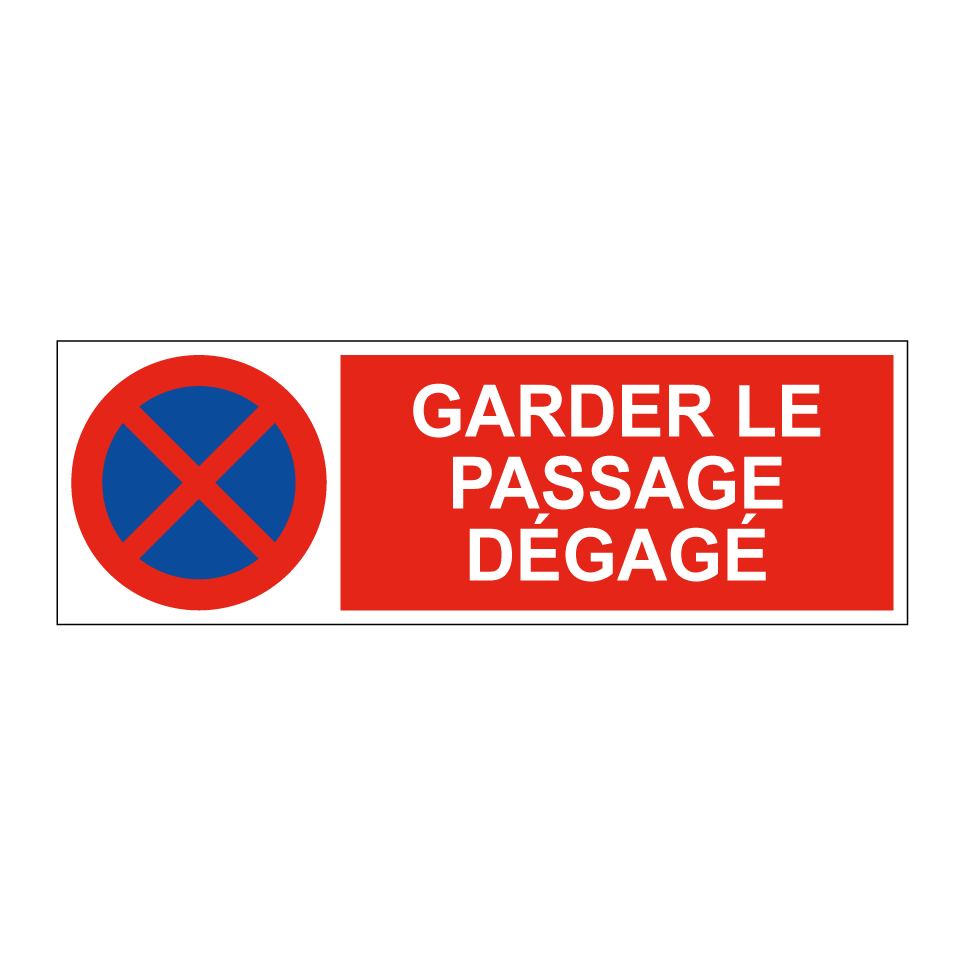 Panneau d'interdiction de stationner avec le texte : "Garder le passage dégagé" et une symbolique claire.