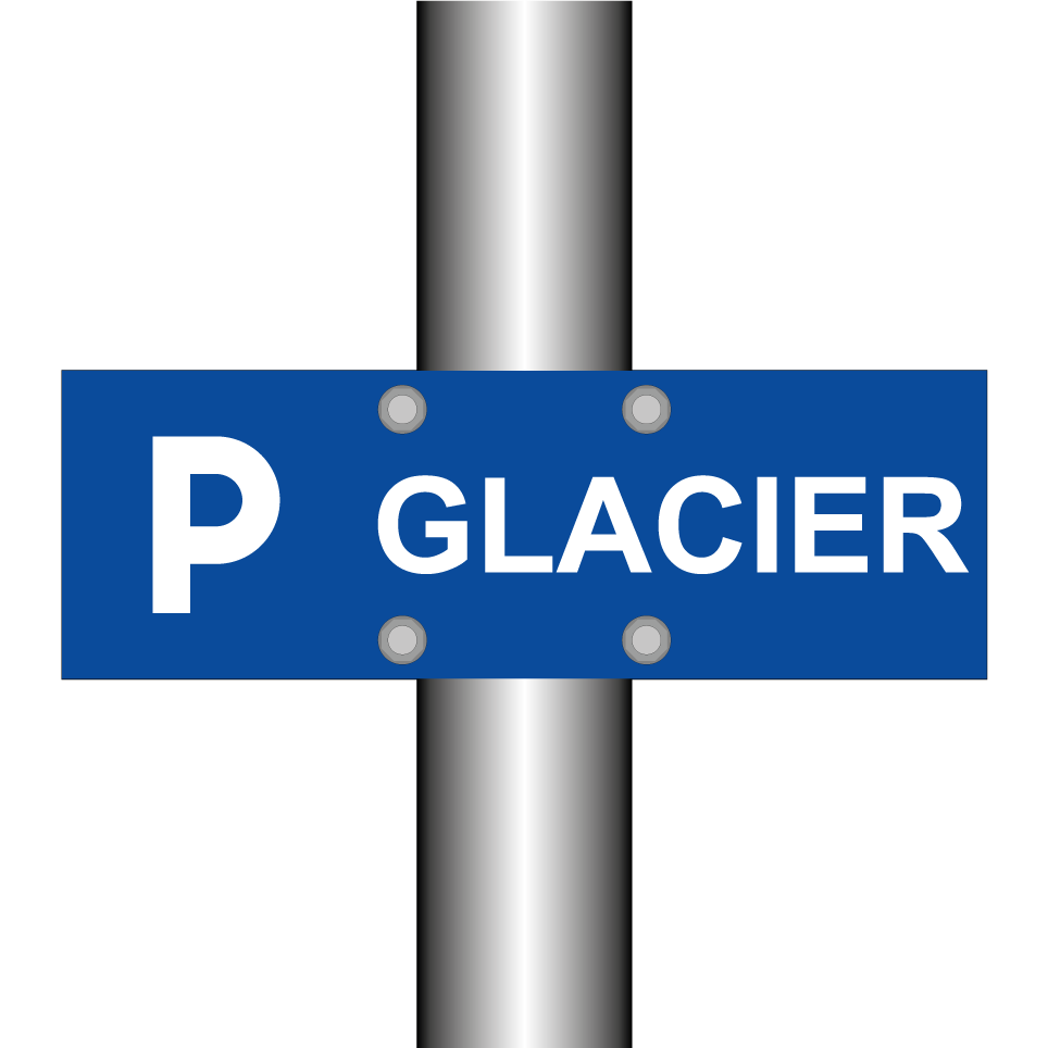 Panneau de stationnement avec le texte : "Glacier" et une symbolique claire.
