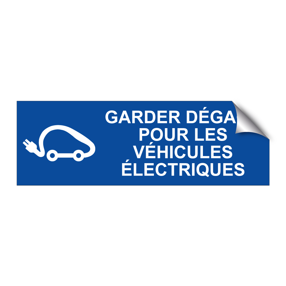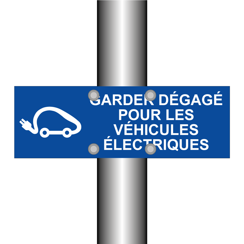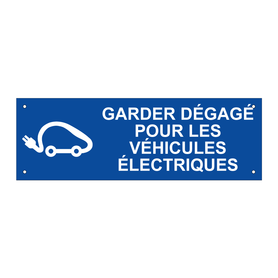 Panneau de stationnement avec le texte : "Garder dégagé pour les véhicules électriques" et une symbolique claire.