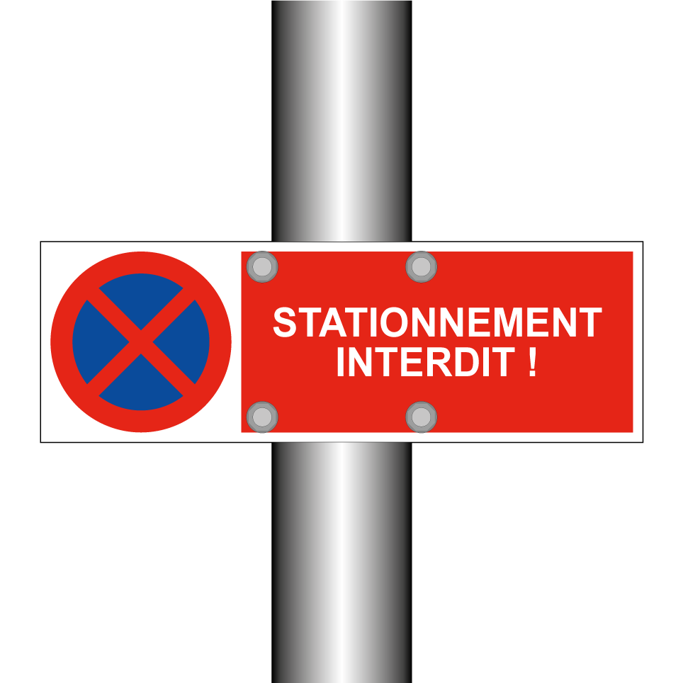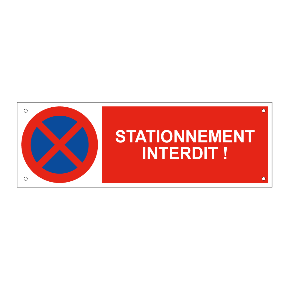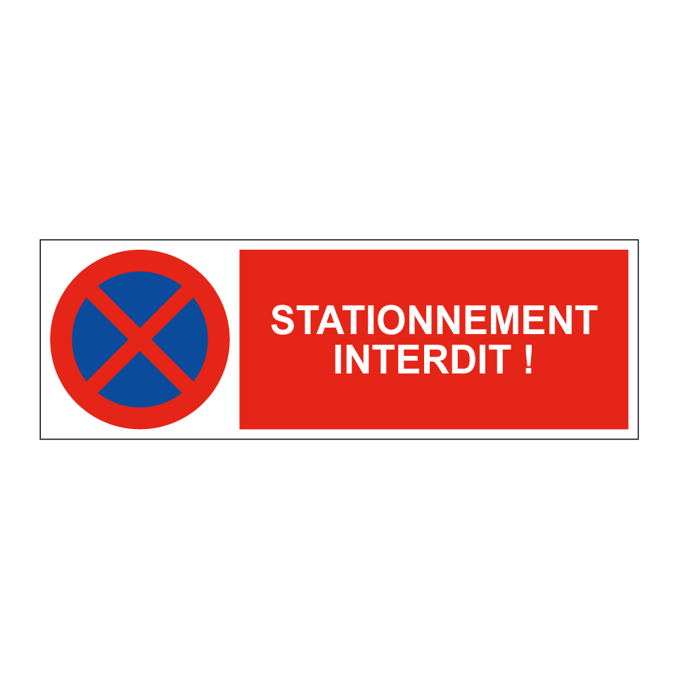 Panneau d'interdiction de stationner avec le texte : "Stationnement interdit !" et une symbolique claire.