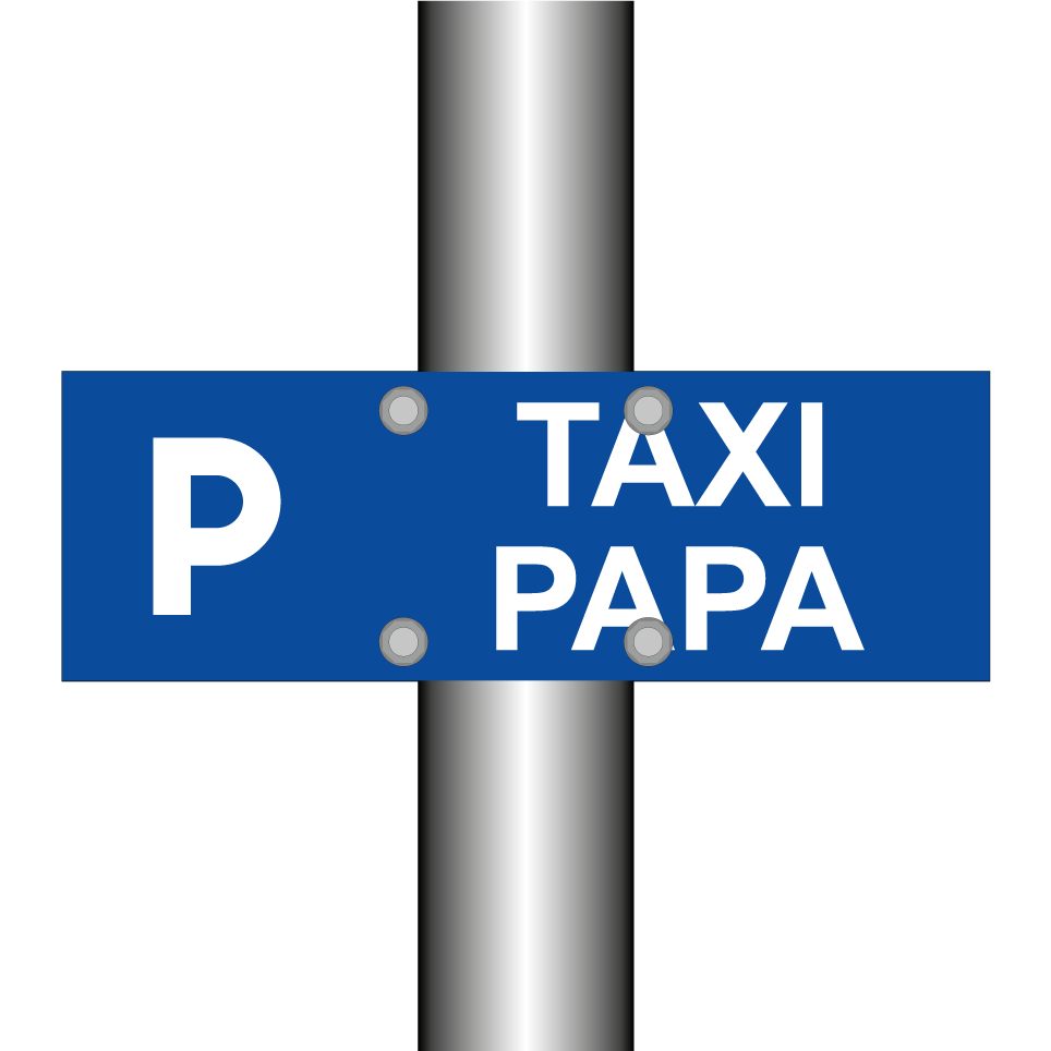 Panneau de stationnement avec le texte : "Taxi papa" et une symbolique claire.