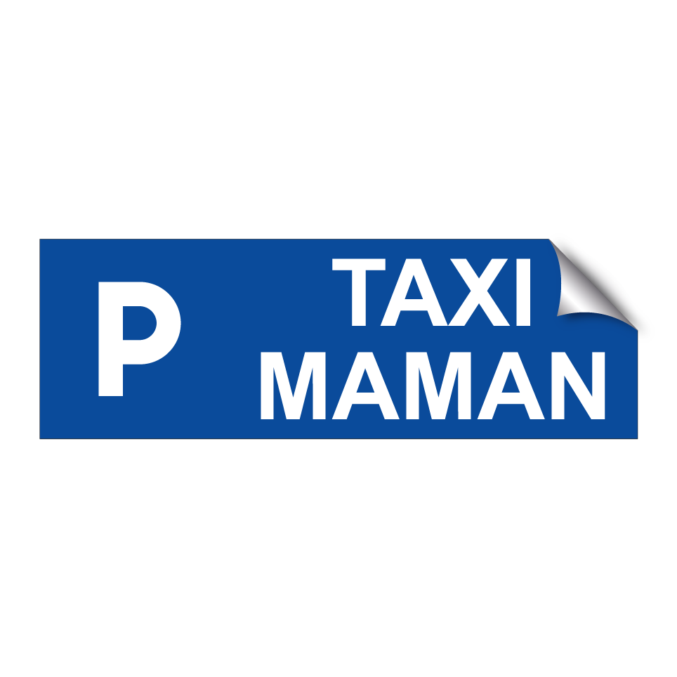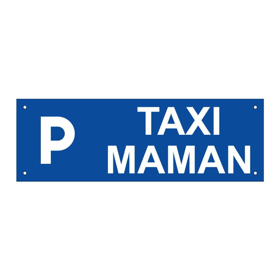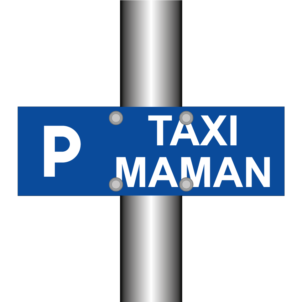 Panneau de stationnement avec le texte : "Taxi maman" et une symbolique claire.