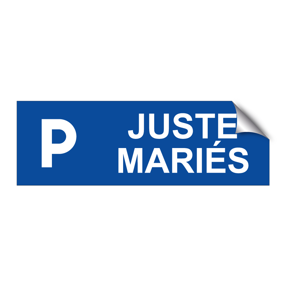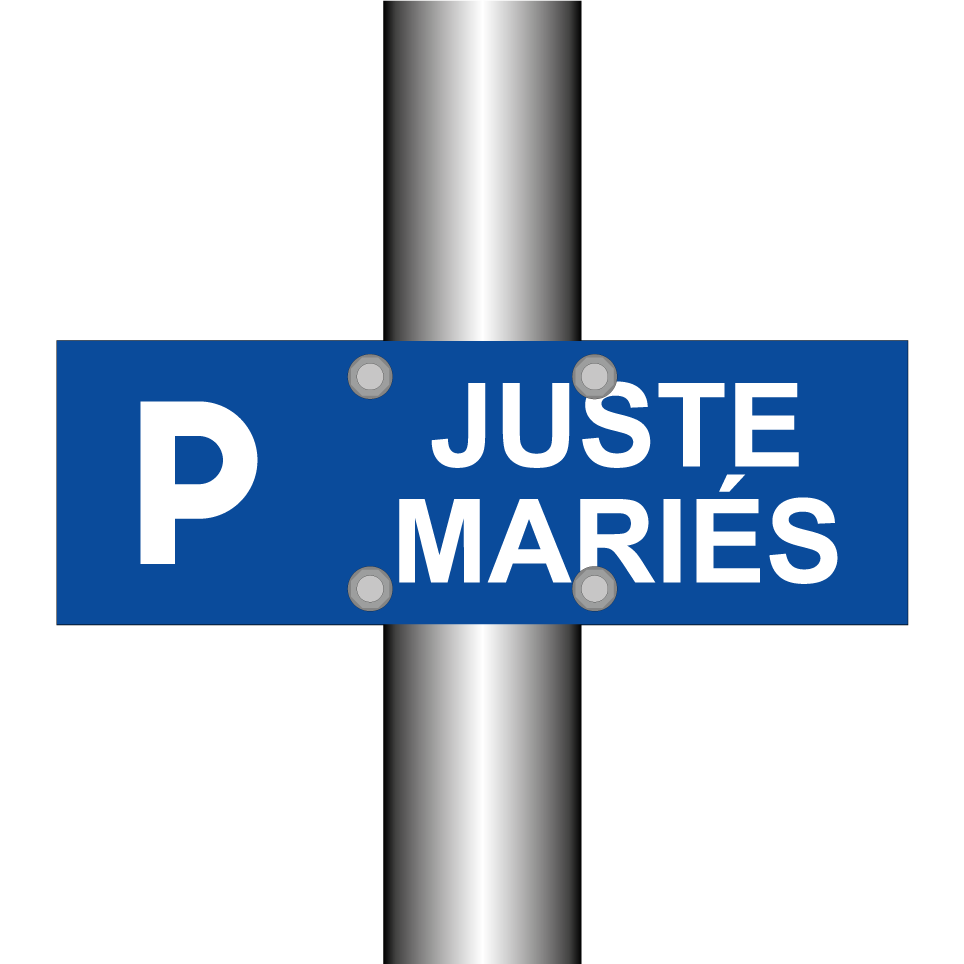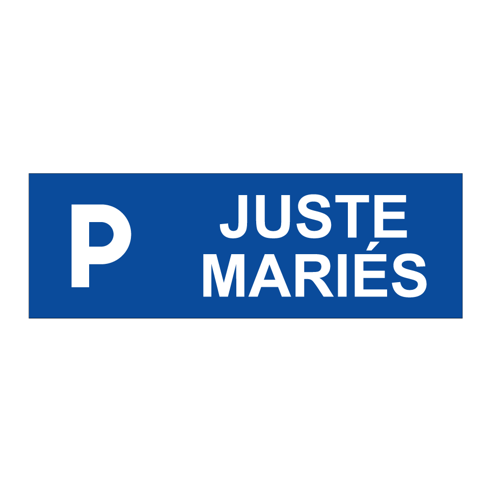 Panneau de stationnement avec le texte : "Juste mariés" et une symbolique claire.