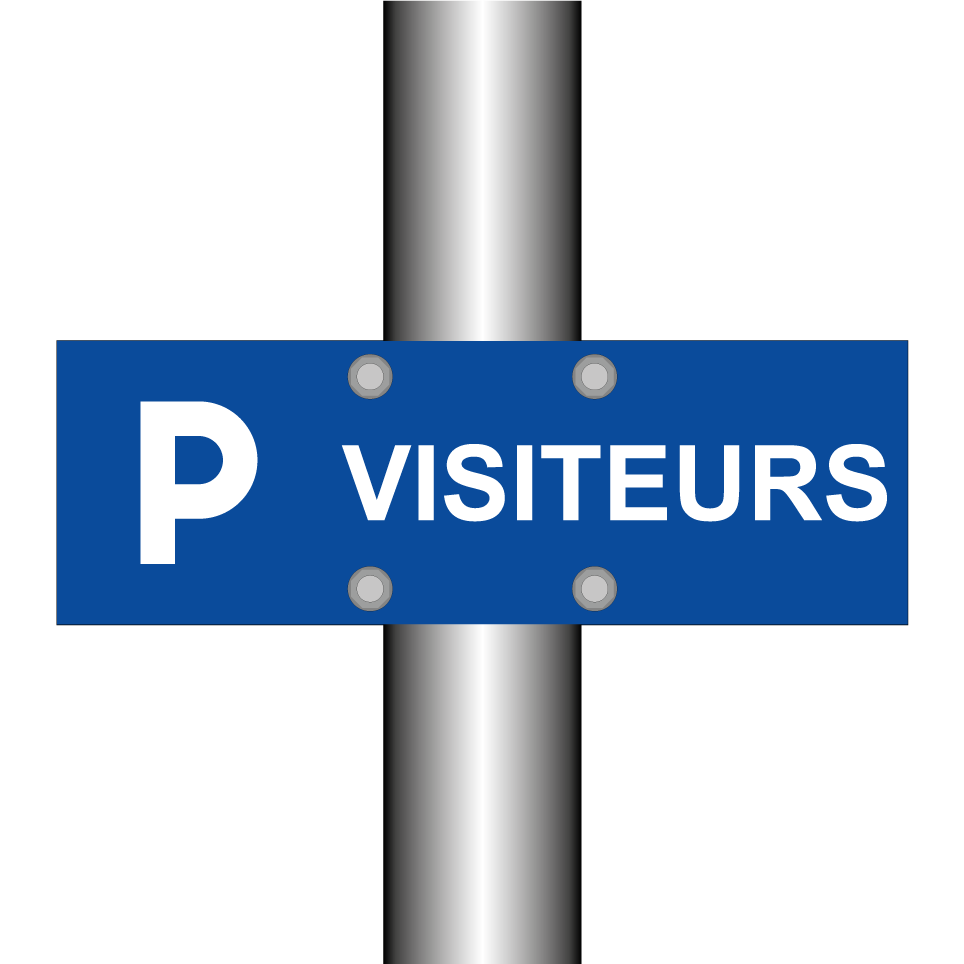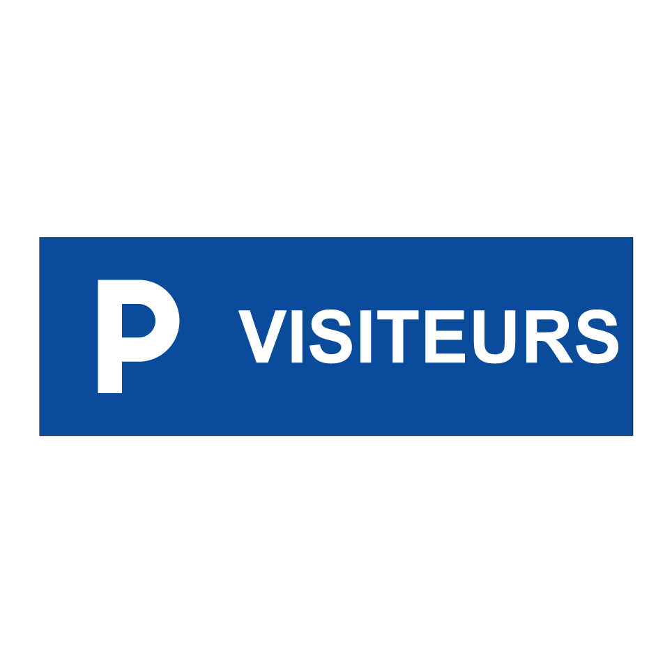 Panneau de stationnement avec le texte : "Visiteurs" et une symbolique claire.