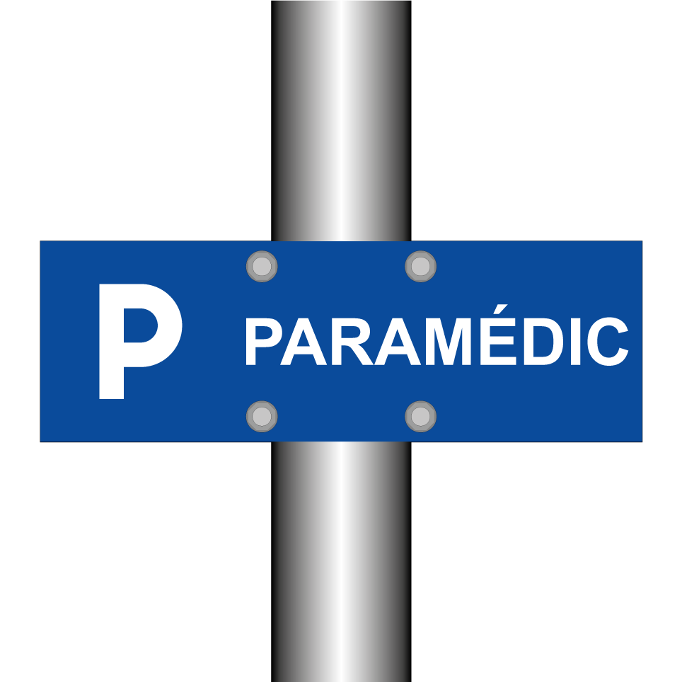 Panneau de stationnement avec le texte : "Paramédic" et une symbolique claire.