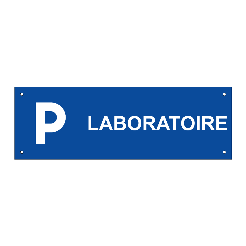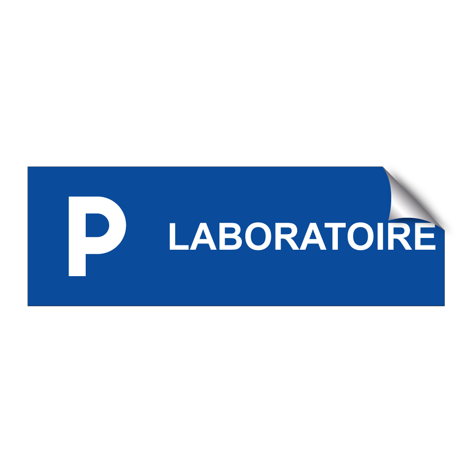 Panneau de stationnement avec le texte : "Laboratoire" et une symbolique claire.