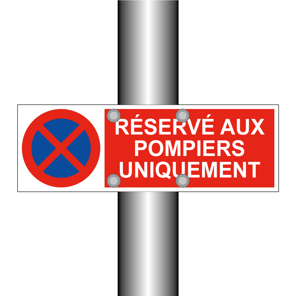 Panneau d'interdiction de stationner avec le texte : "Réservé aux pompiers uniquement" et une symbolique claire.