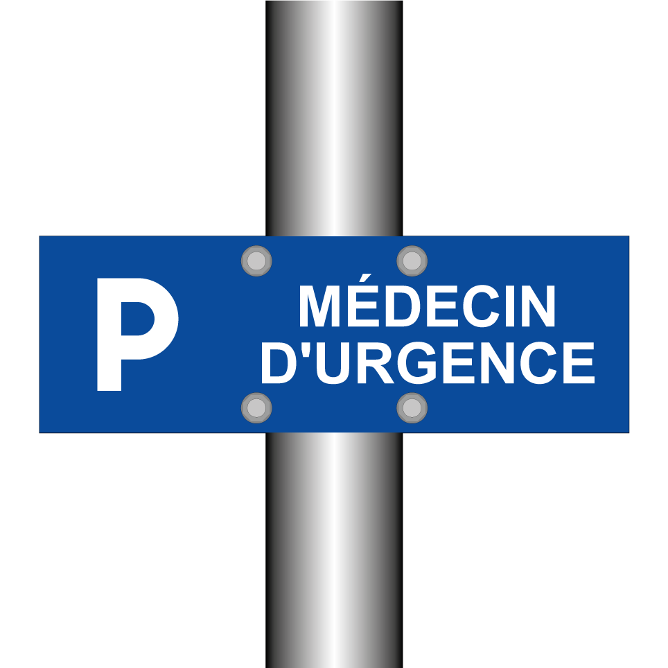 Panneau de stationnement avec le texte : "Médecin d'urgence" et une symbolique claire.