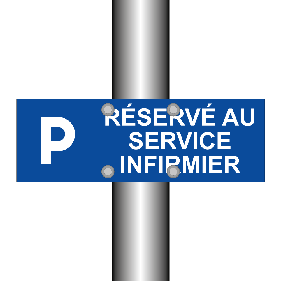 Panneau de stationnement avec le texte : "Réservé au service infirmier" et une symbolique claire.