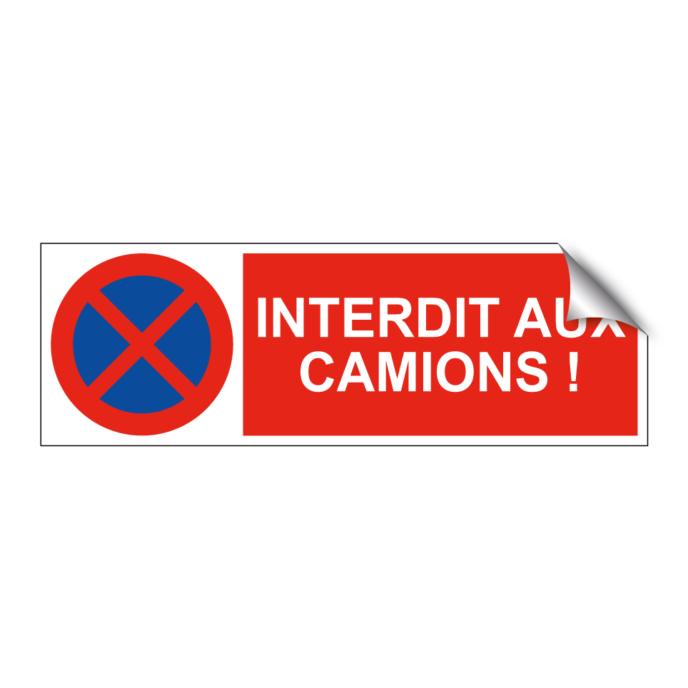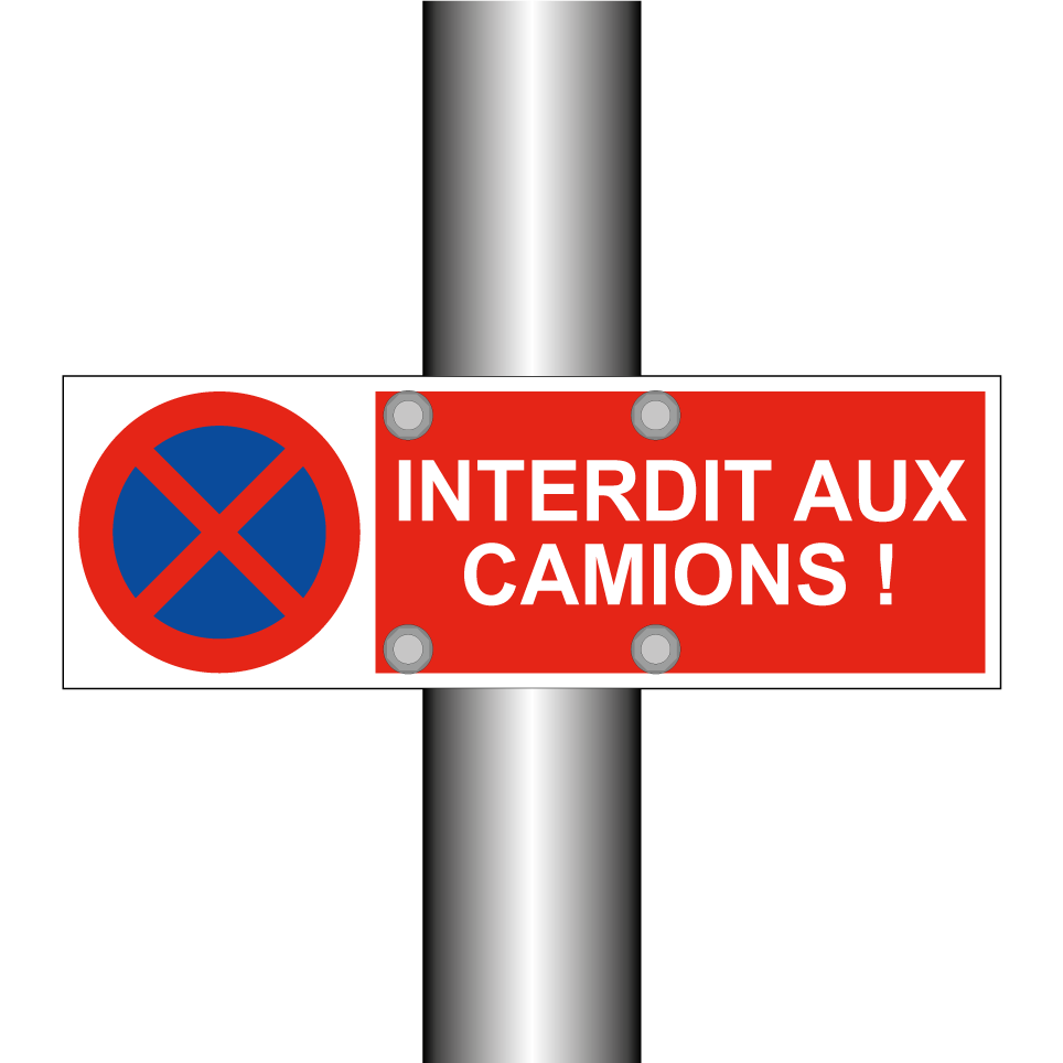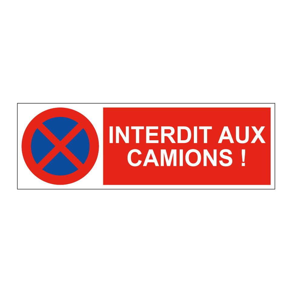 Panneau d'interdiction de stationner avec le texte : "Interdit aux camions !" et une symbolique claire.