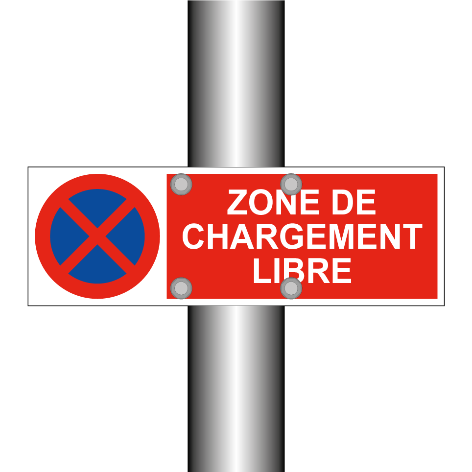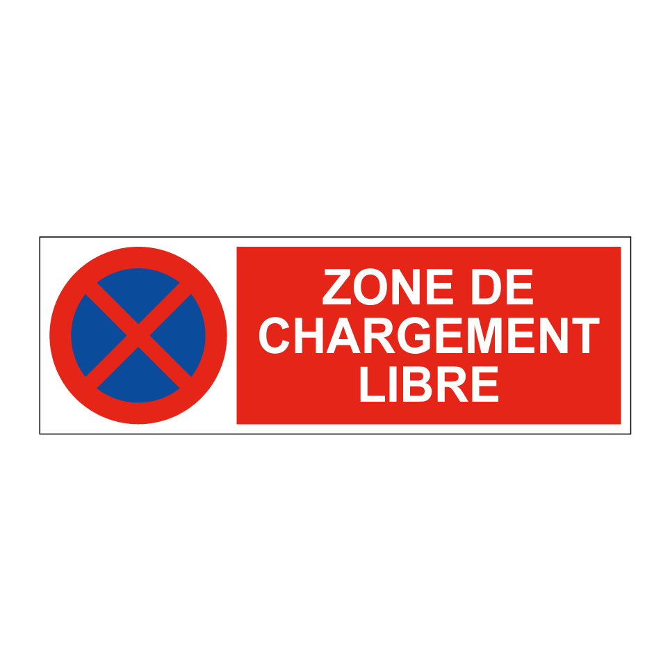 Panneau d'interdiction de stationner avec le texte : "Zone de chargement libre" et une symbolique claire.