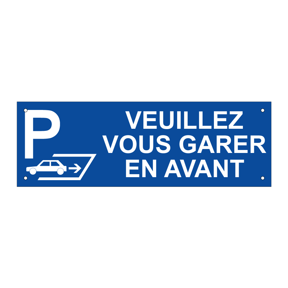 Ce panneau de stationnement est idéal pour les parkings publics, les garages privés et les zones commerciales. Il guide les conducteurs à se garer correctement en avant, assurant une circulation fluide et sécurisée. Grâce à sa couleur bleue et son texte blanc, il est facilement visible de loin. Placez-le à l'entrée de votre parking ou à des endroits stratégiques pour optimiser l'organisation et la sécurité des véhicules. Ce panneau est essentiel pour maintenir l'ordre et éviter les malentendus.