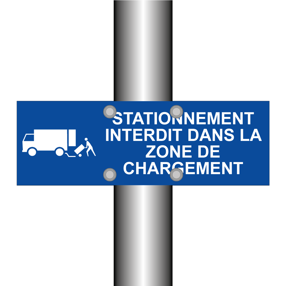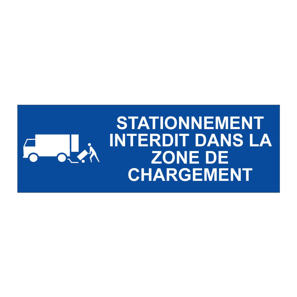 Ce panneau de stationnement interdit est idéal pour les zones de chargement où le stationnement doit être strictement contrôlé. Conçu pour être placé dans des parkings, des zones industrielles ou des espaces commerciaux, il assure que les véhicules ne bloquent pas l'accès essentiel pour les livraisons. Avec son fond bleu et son texte blanc, il est facilement visible et compréhensible, garantissant une communication claire et efficace. Ce panneau est parfait pour maintenir l'ordre et la fluidité dans les zones à fort trafic.