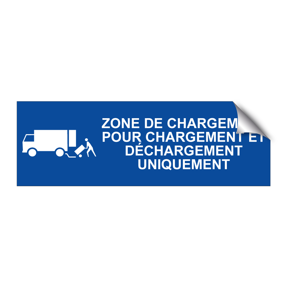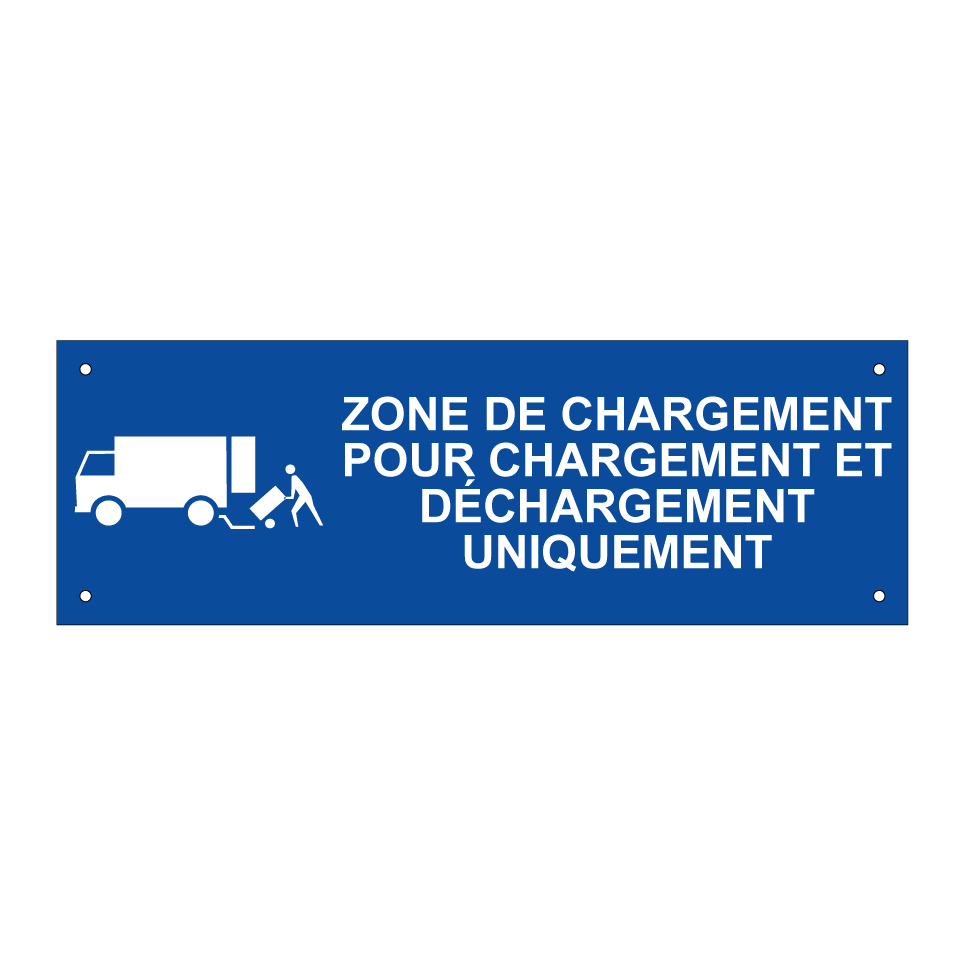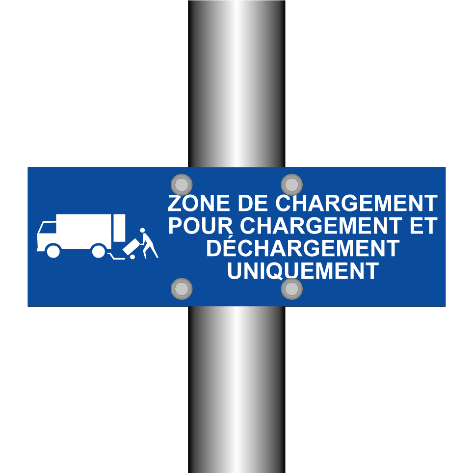 Panneau de stationnement avec le texte : "Zone de chargement pour chargement et déchargement uniquement" et une symbolique claire.