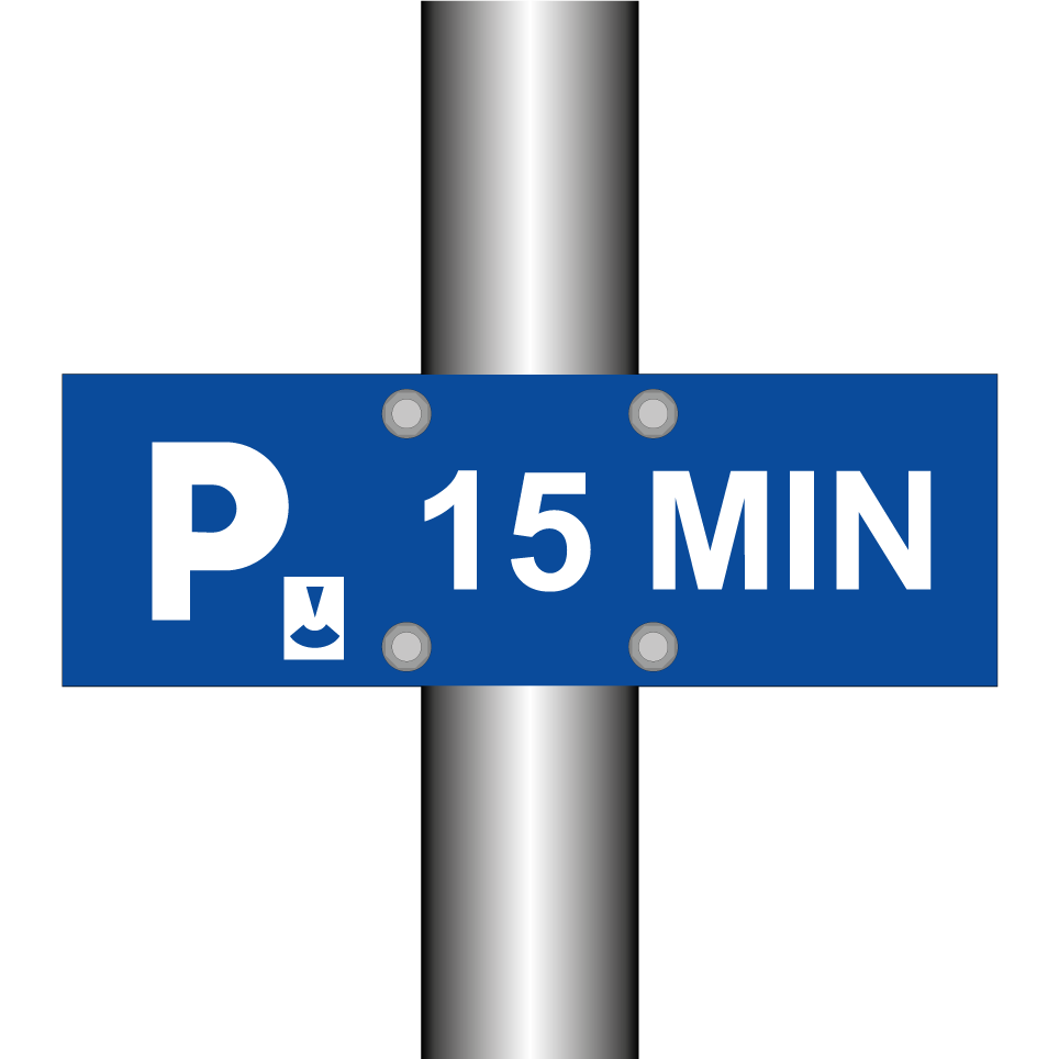 Panneau de stationnement avec le texte : "15 min." et une symbolique claire.