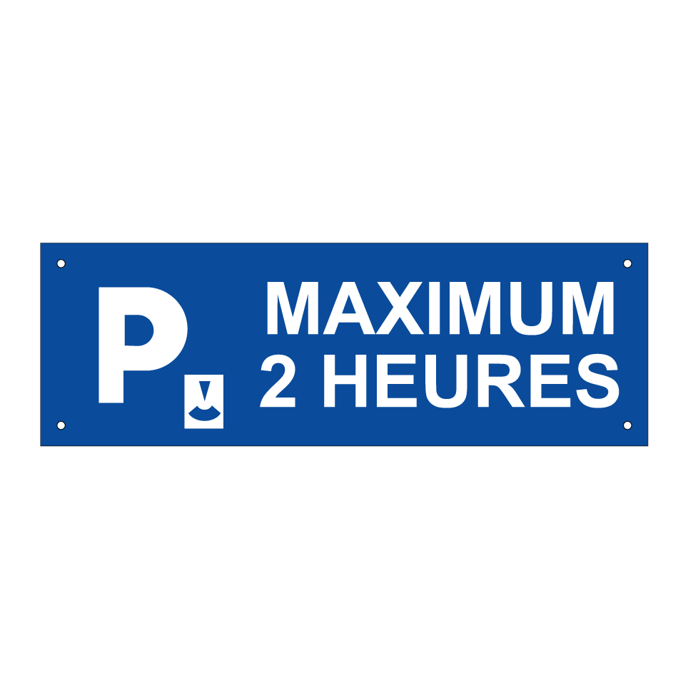 Panneau de stationnement avec le texte : "Maximum 2 heures" et une symbolique claire.