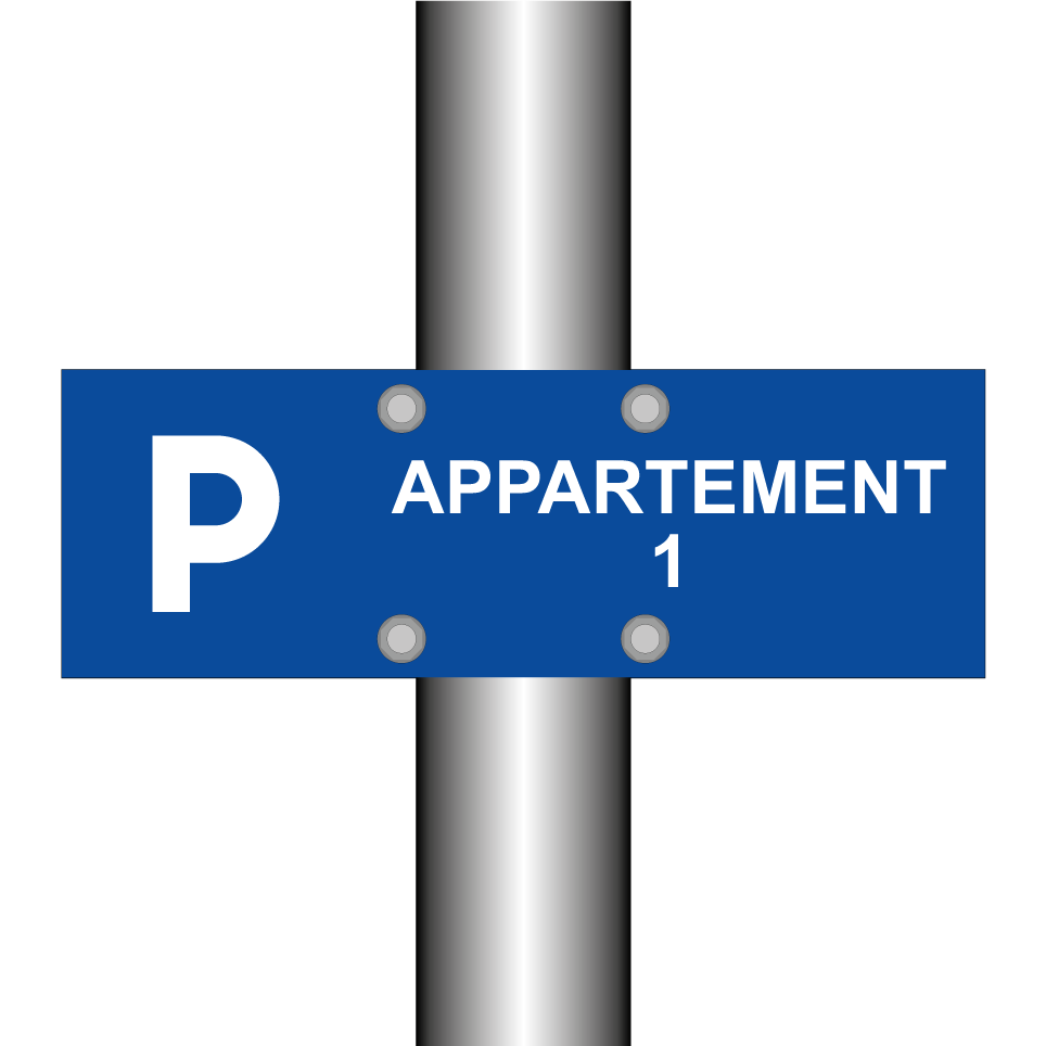Panneau de stationnement avec le texte : "Appartement 1" et une symbolique claire.