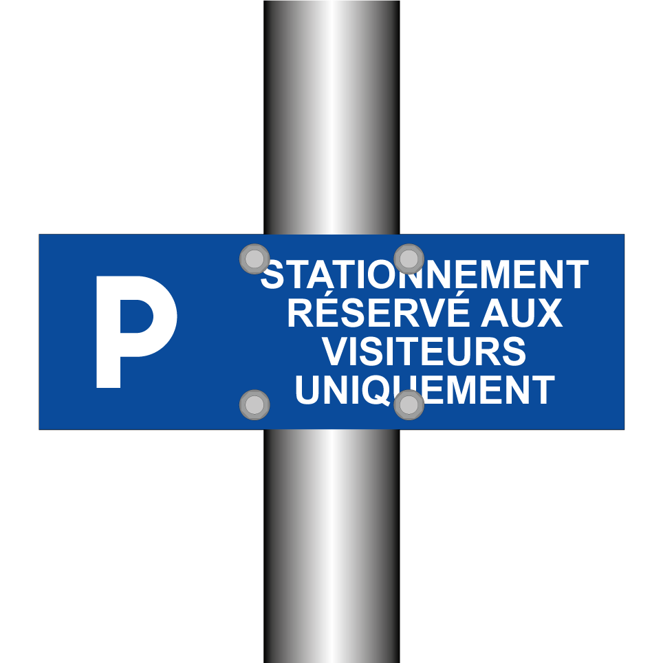 Panneau de stationnement avec le texte : "Stationnement réservé aux visiteurs uniquement" et une symbolique claire.