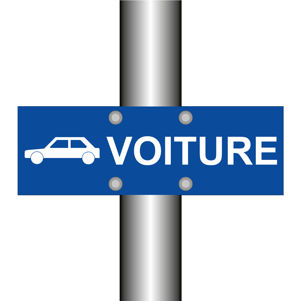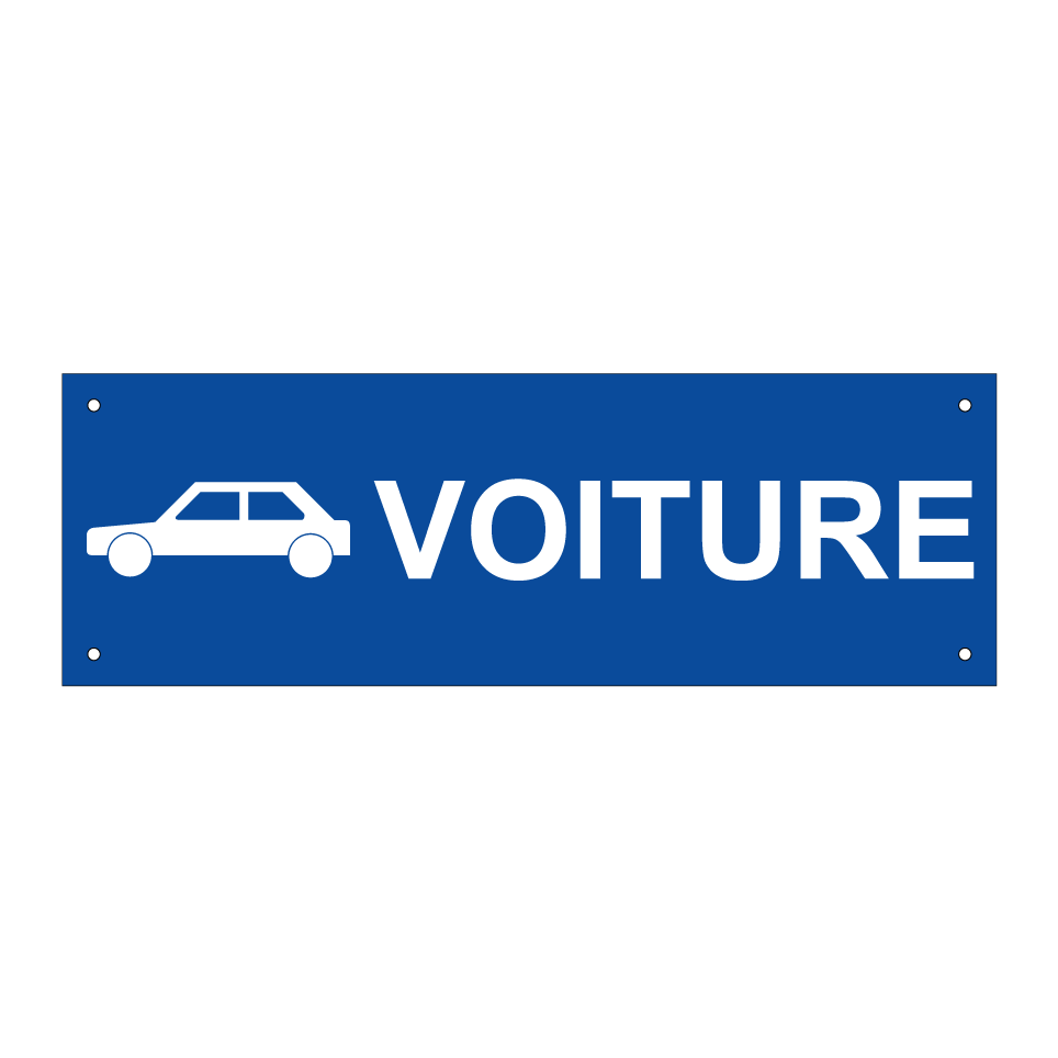 Panneau de stationnement avec le texte : "Voiture" et une symbolique claire.