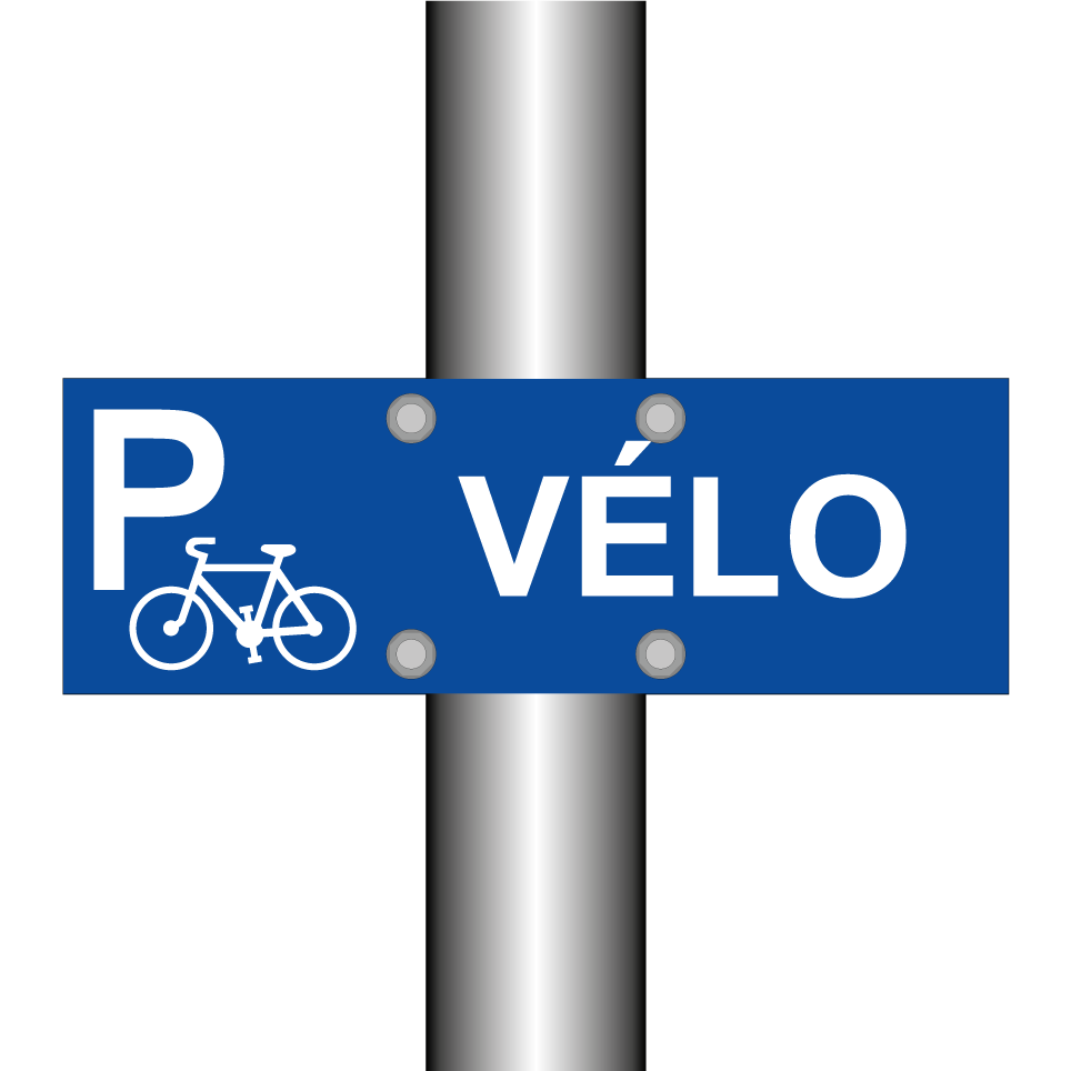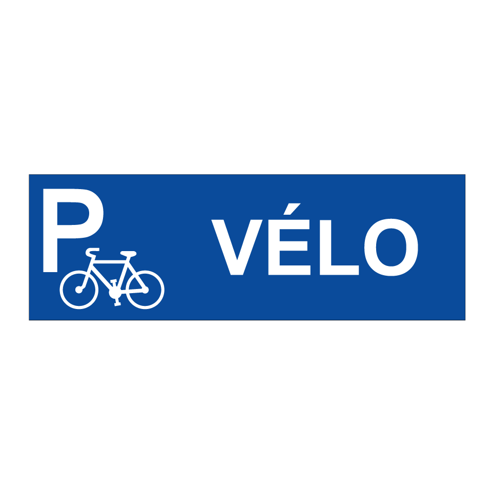 Panneau de stationnement avec le texte : "Vélo" et une symbolique claire.