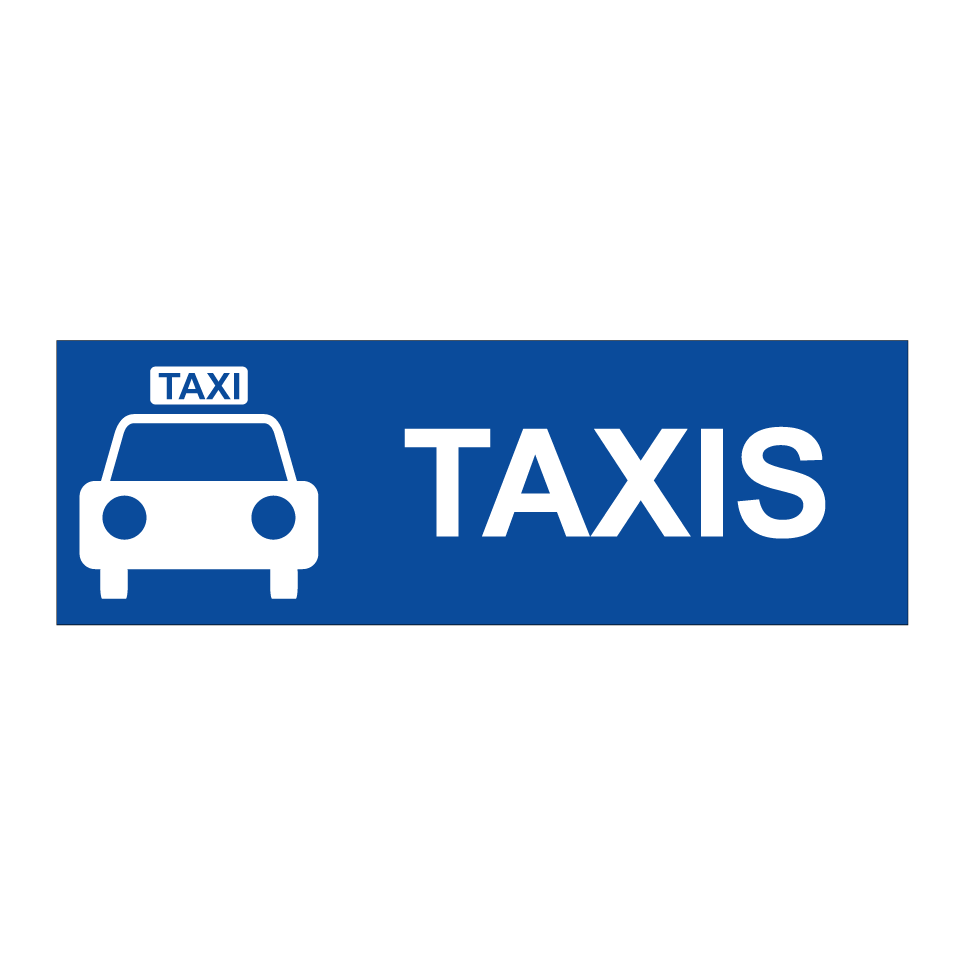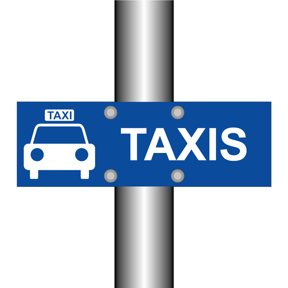 Panneau de stationnement avec le texte : "Taxis" et une symbolique claire.