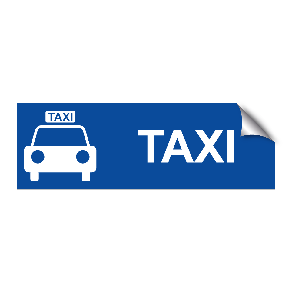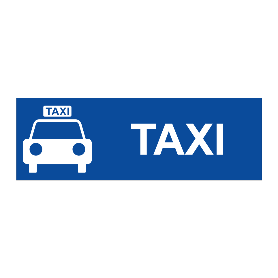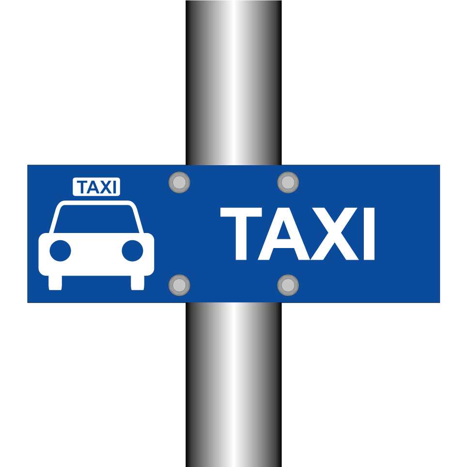 Panneau de stationnement avec le texte : "Taxi" et une symbolique claire.