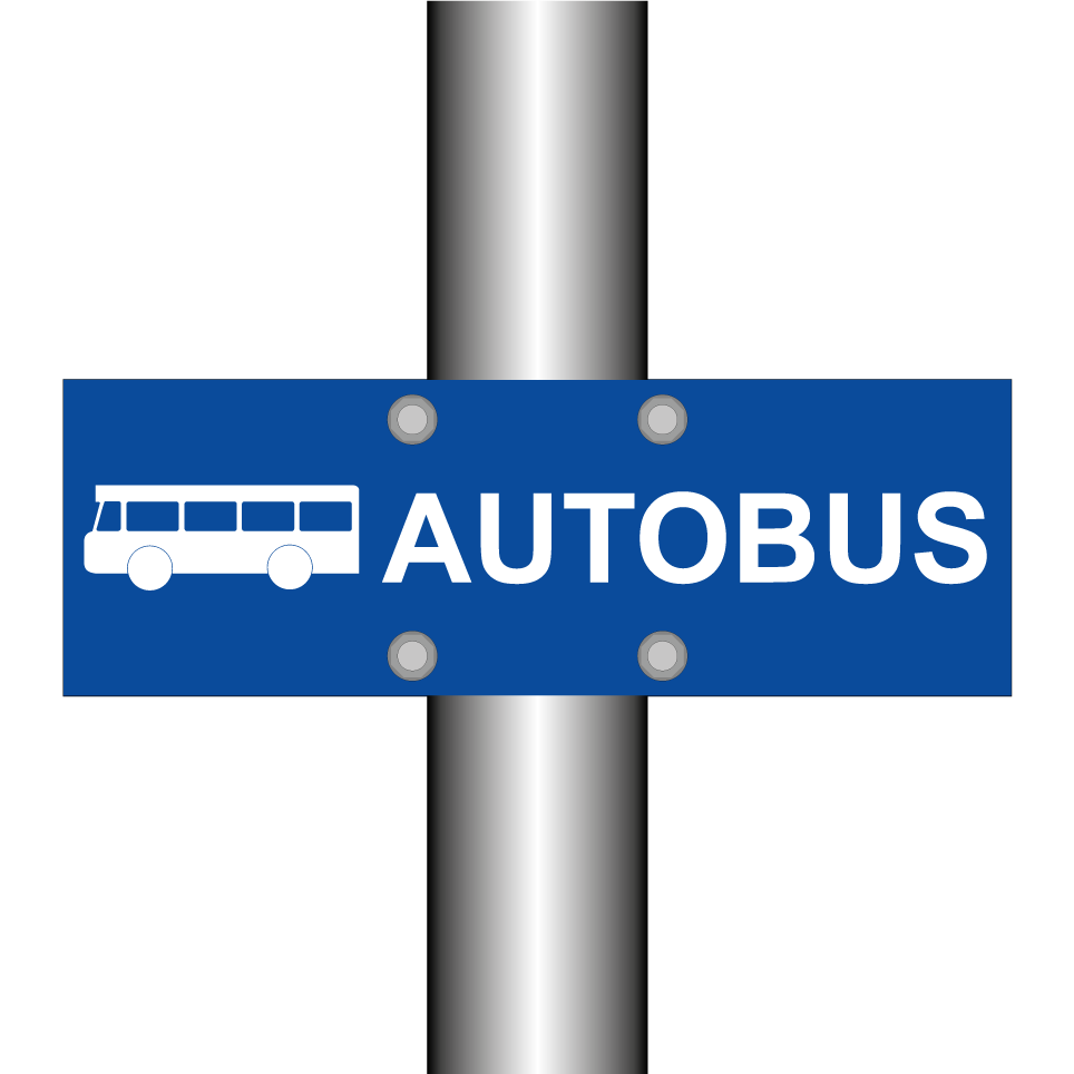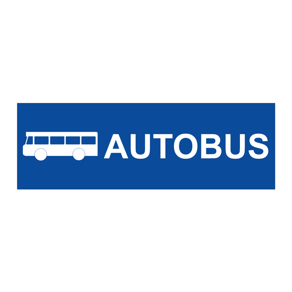 Panneau de stationnement avec le texte : "Autobus" et une symbolique claire.