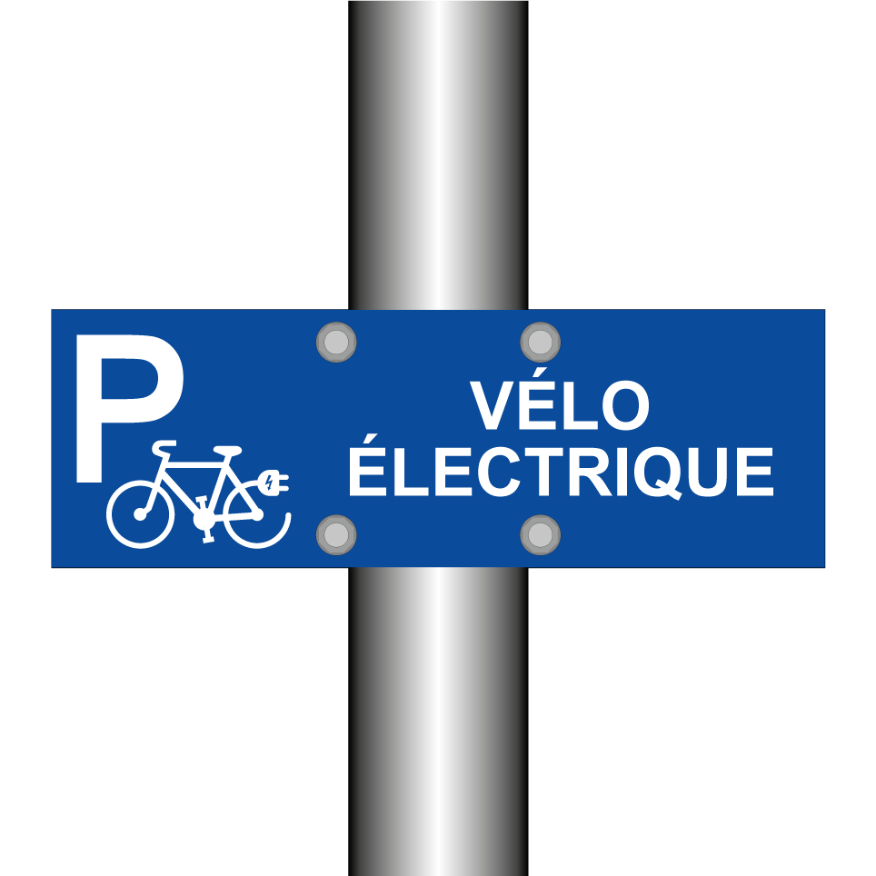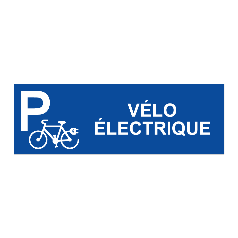 Panneau de stationnement avec le texte : "Vélo électrique" et une symbolique claire.