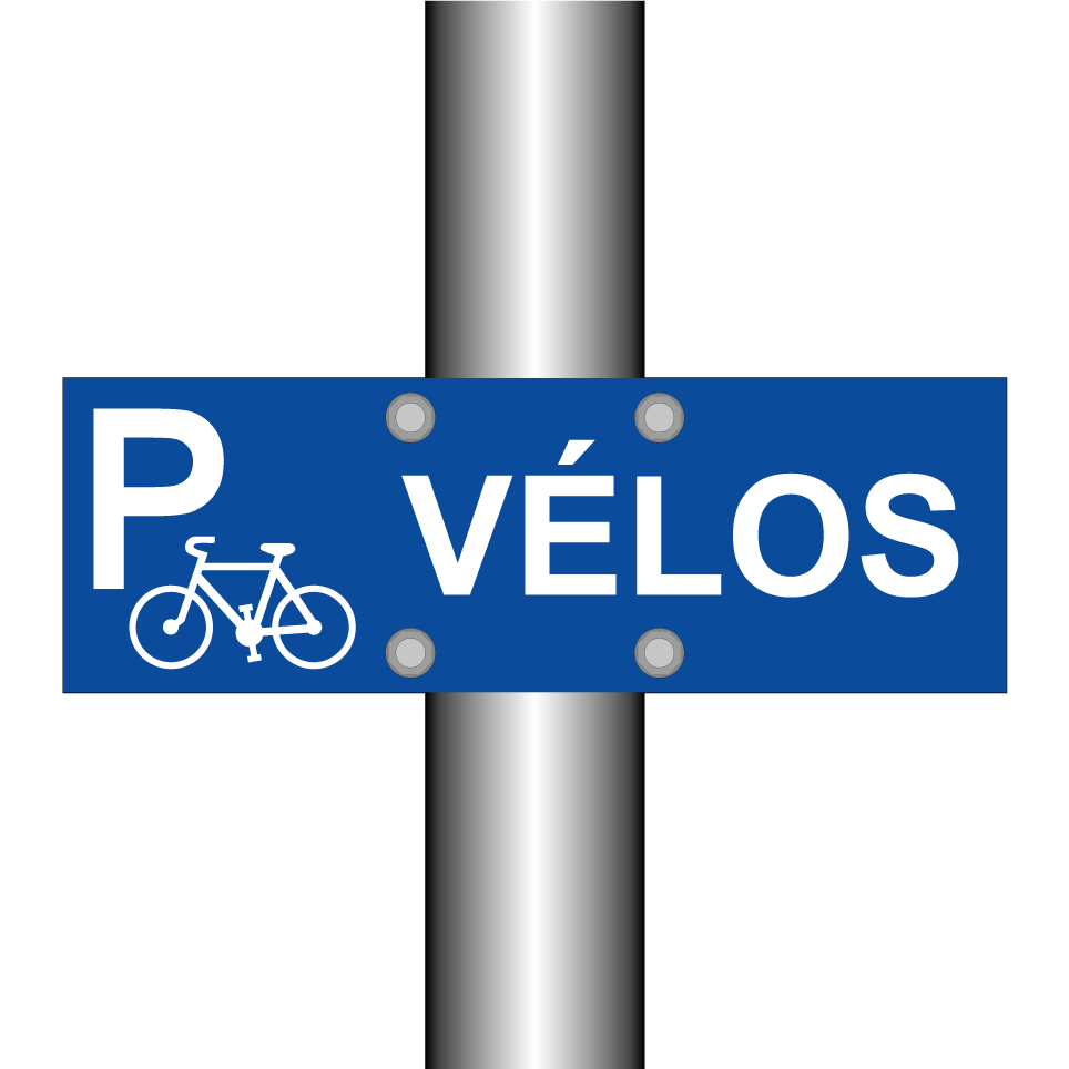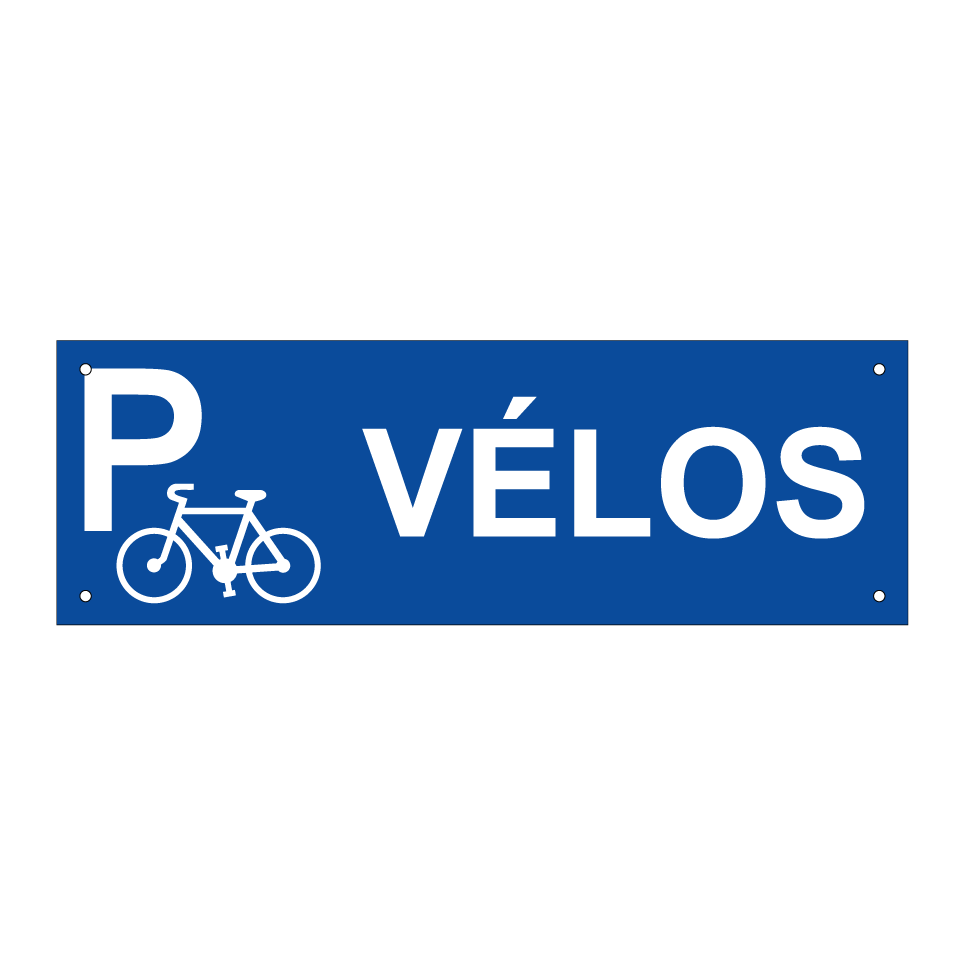 Panneau de stationnement avec le texte : "Vélos" et une symbolique claire.