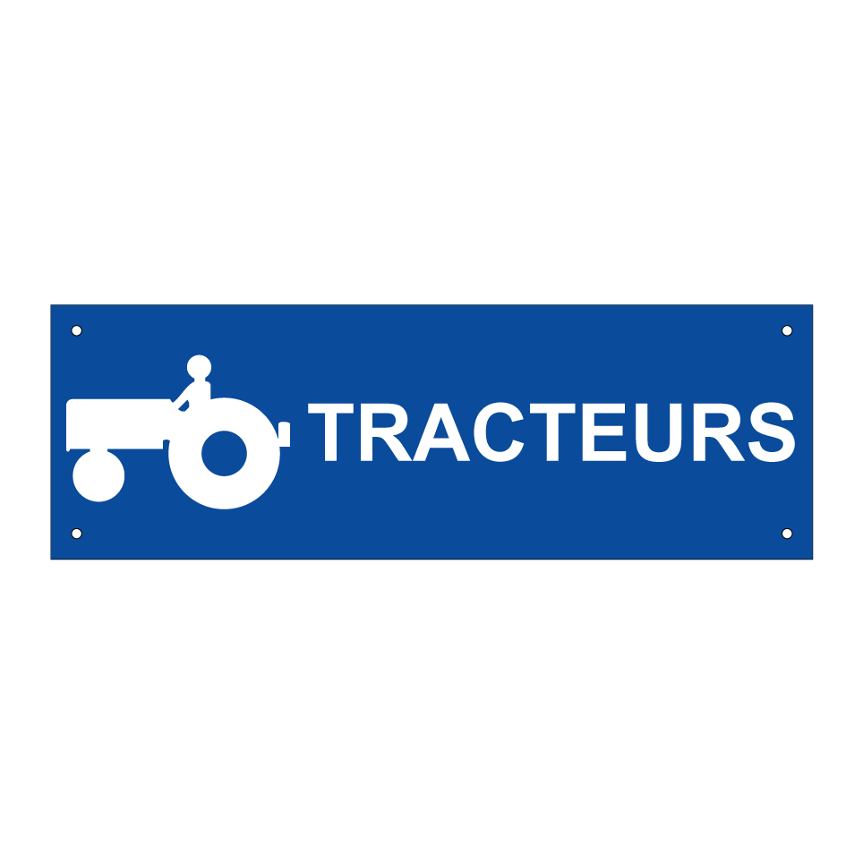 Panneau de stationnement avec le texte : "Tracteurs" et une symbolique claire.