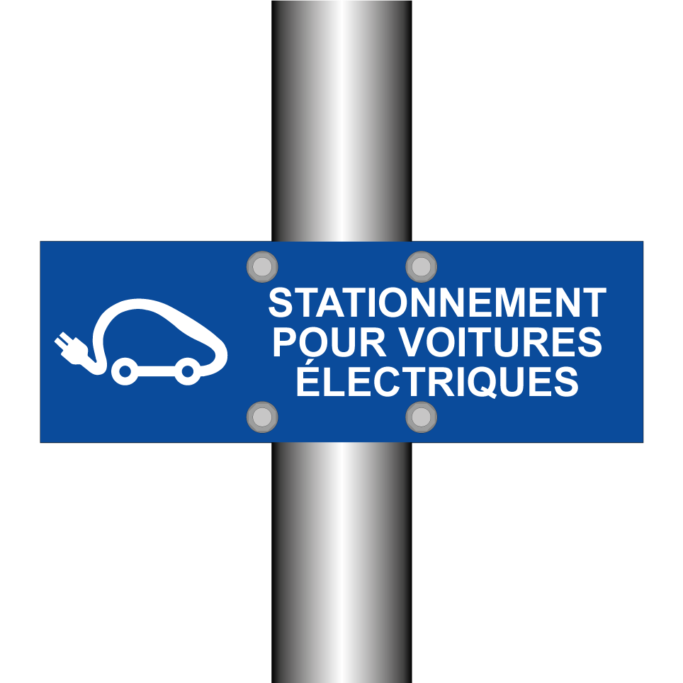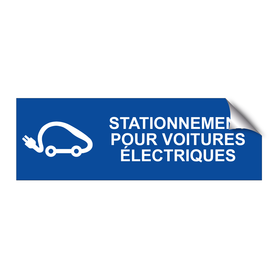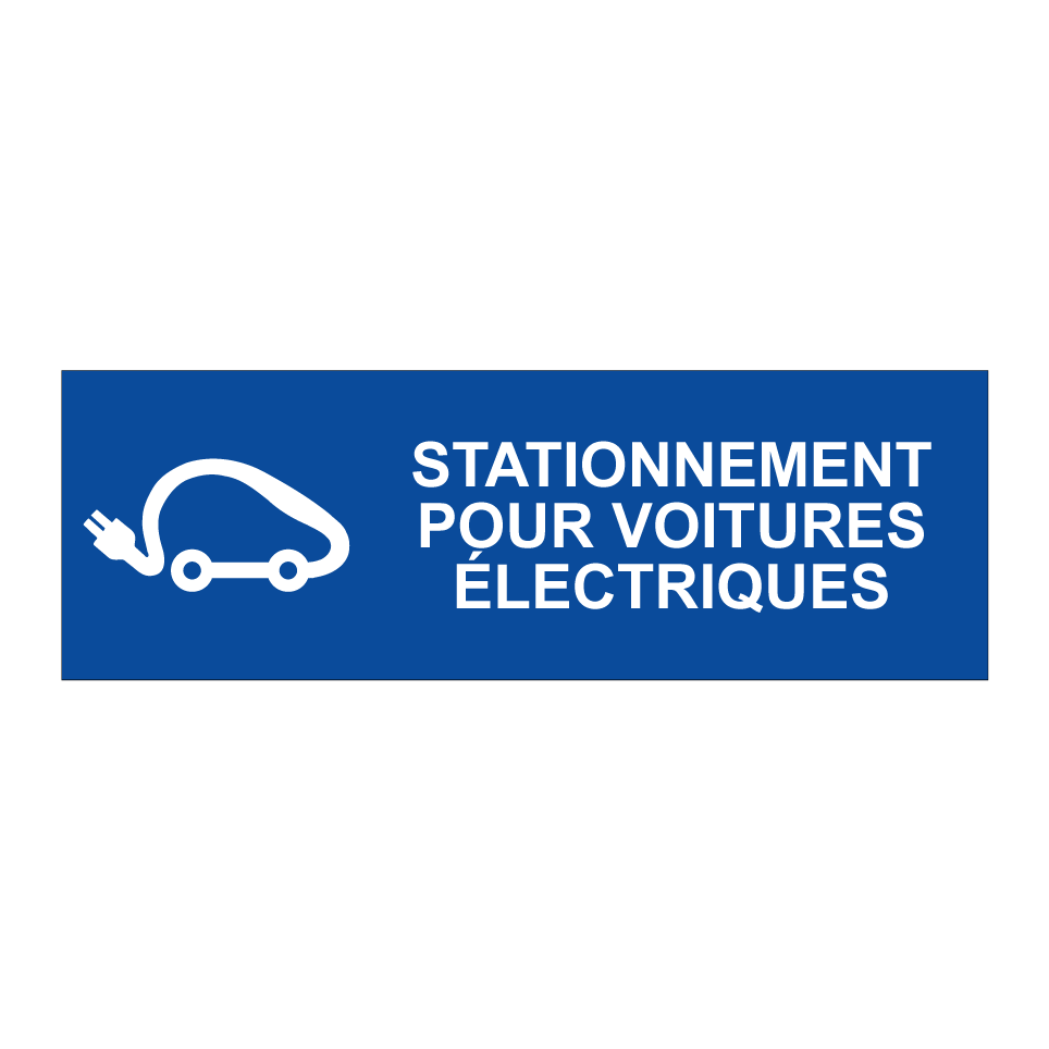 Panneau de stationnement avec le texte : "Stationnement pour voitures électriques" et une symbolique claire.