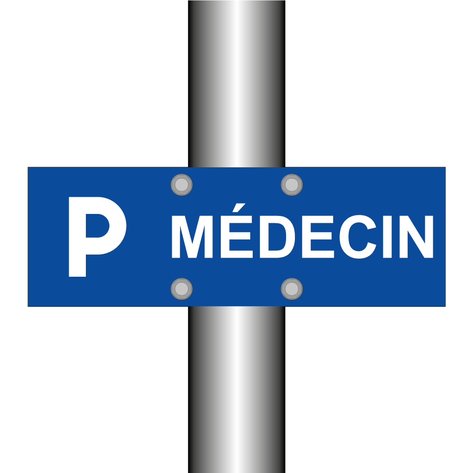 Panneau de stationnement avec le texte : "Médecin" et une symbolique claire.