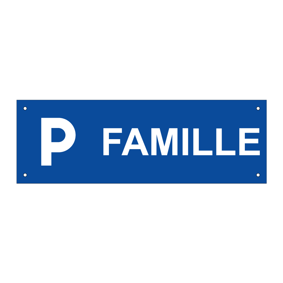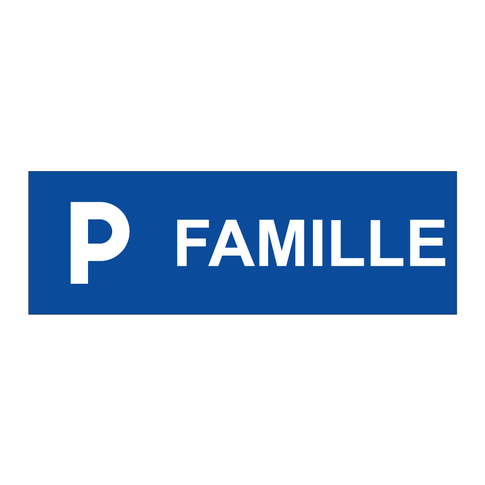 Panneau de stationnement avec le texte : "Famille" et une symbolique claire.