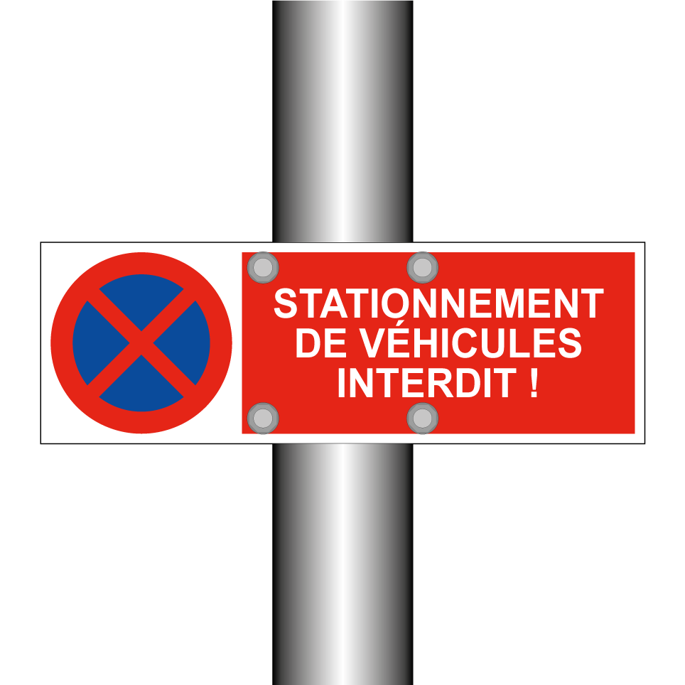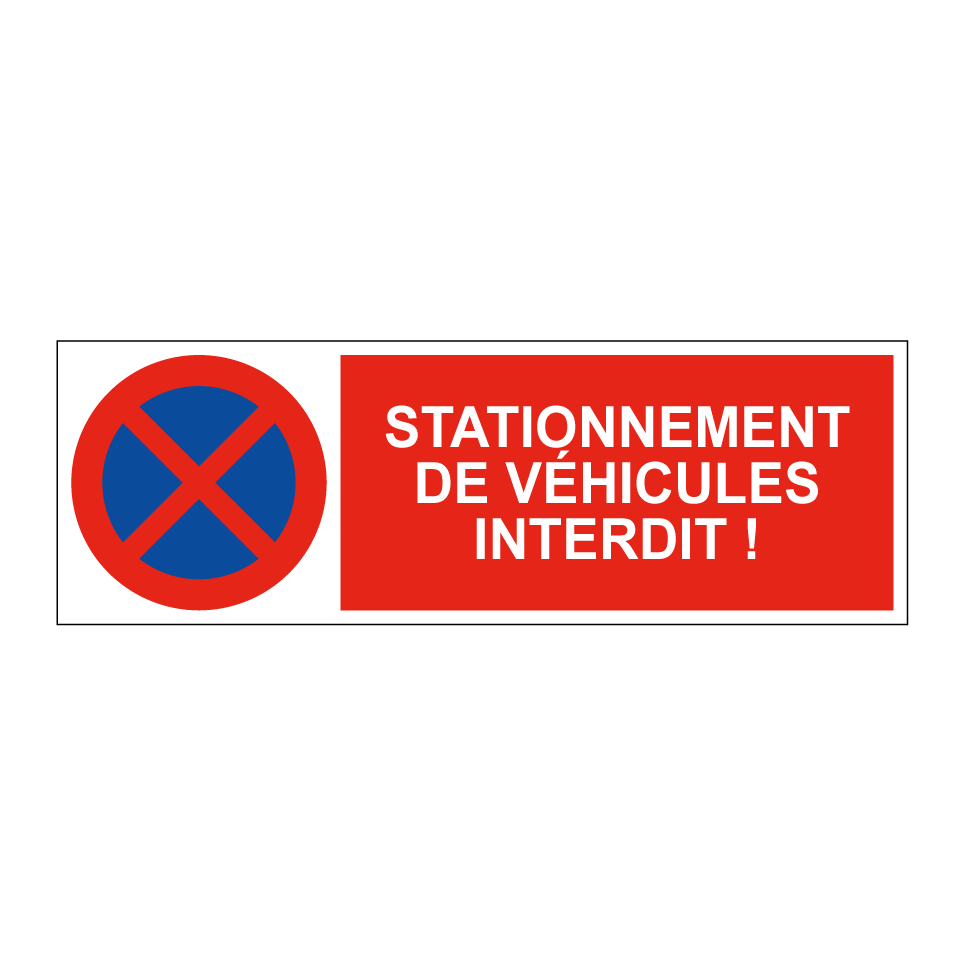 Panneau d'interdiction de stationner avec le texte : "Stationnement de véhicules interdit !" et une symbolique claire.