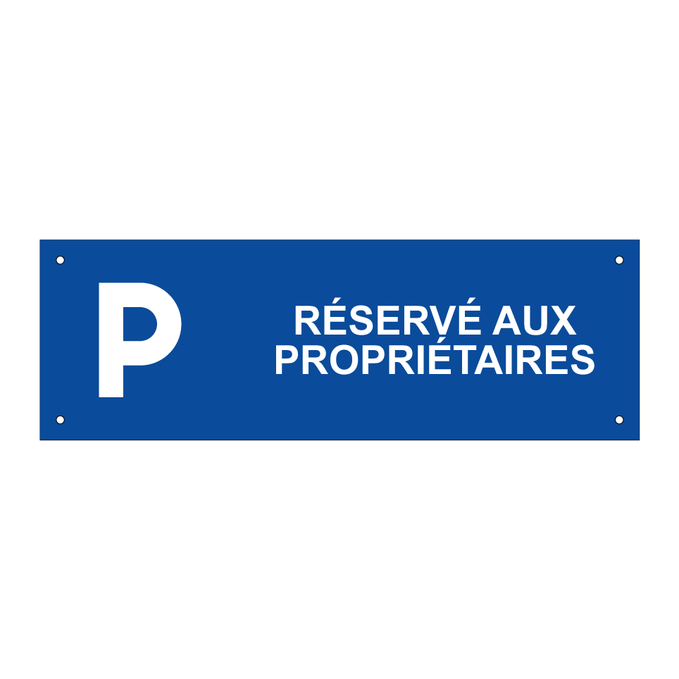 Panneau de stationnement avec le texte : "Réservé aux propriétaires" et une symbolique claire.