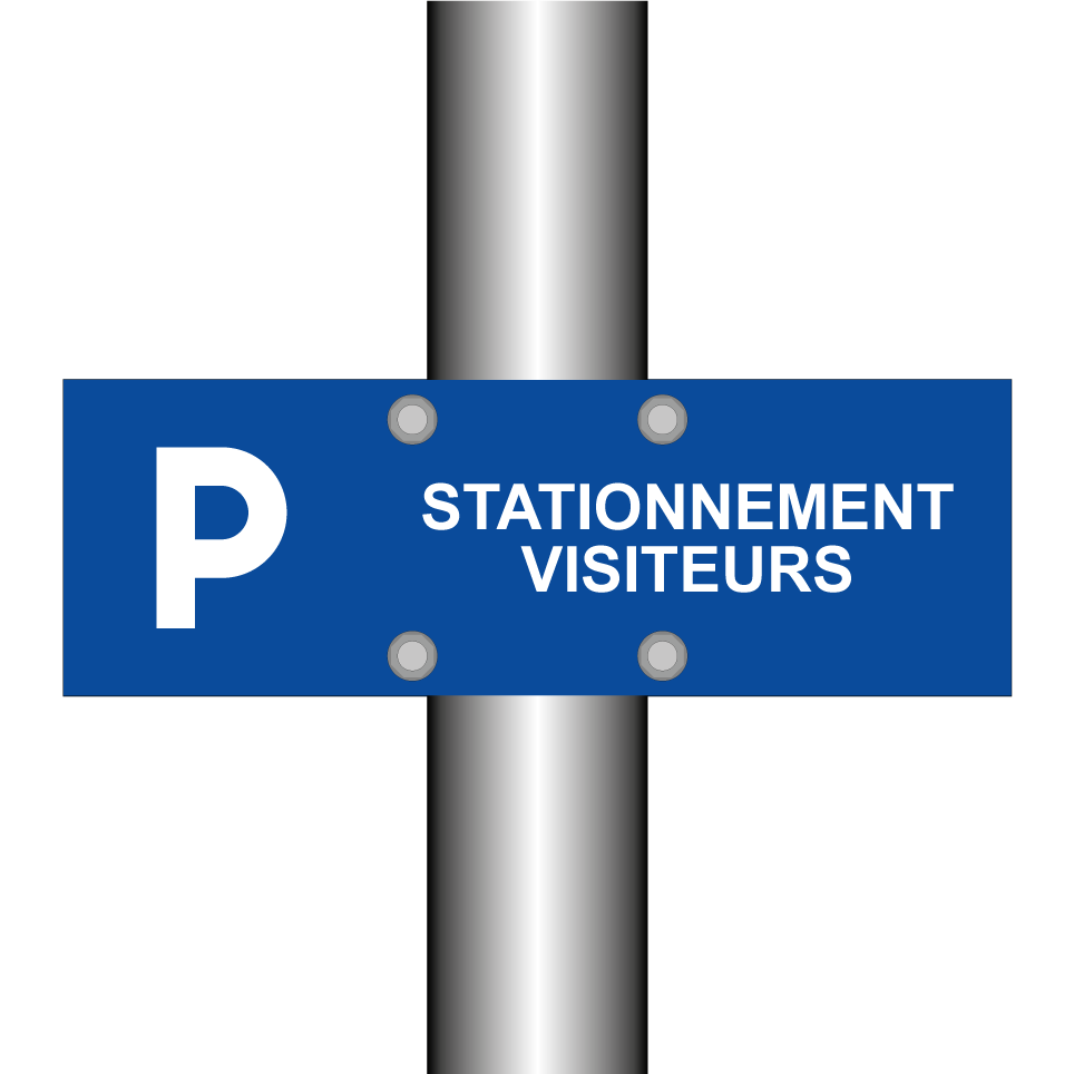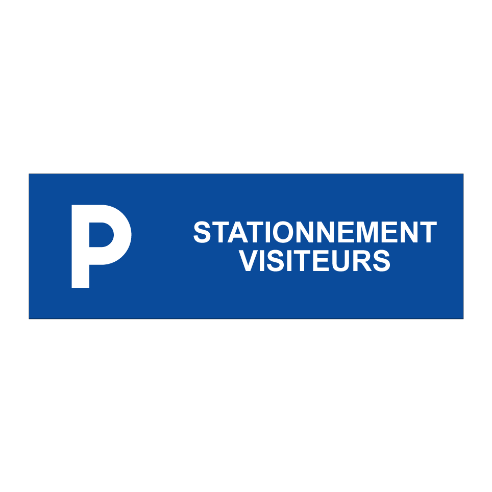 Panneau de stationnement avec le texte : "Stationnement visiteurs" et une symbolique claire.