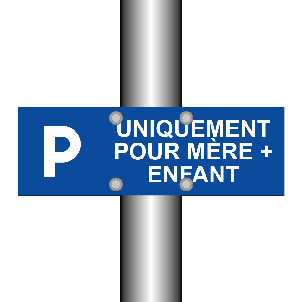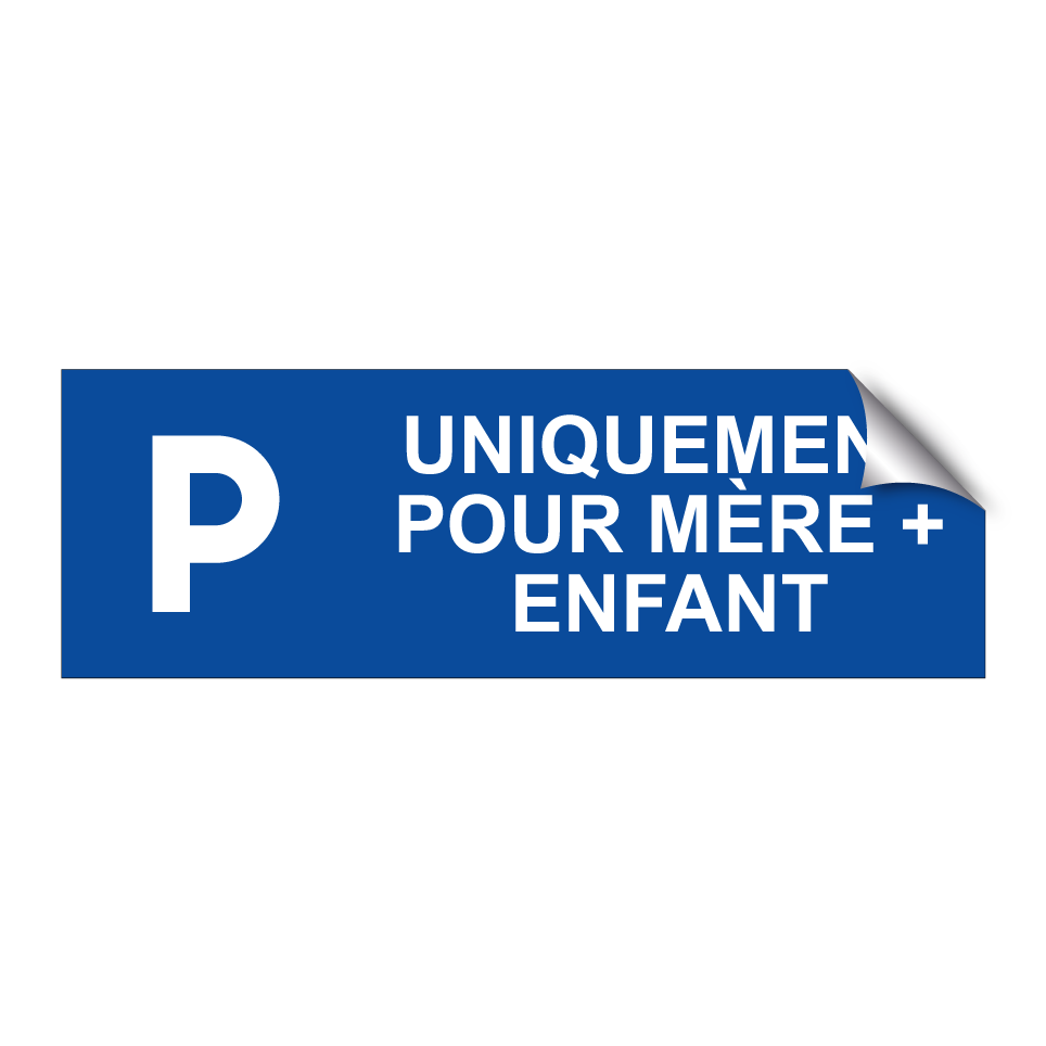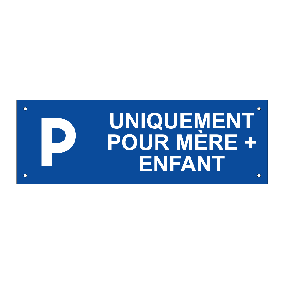 Panneau de stationnement avec le texte : "Uniquement pour mère + enfant" et une symbolique claire.