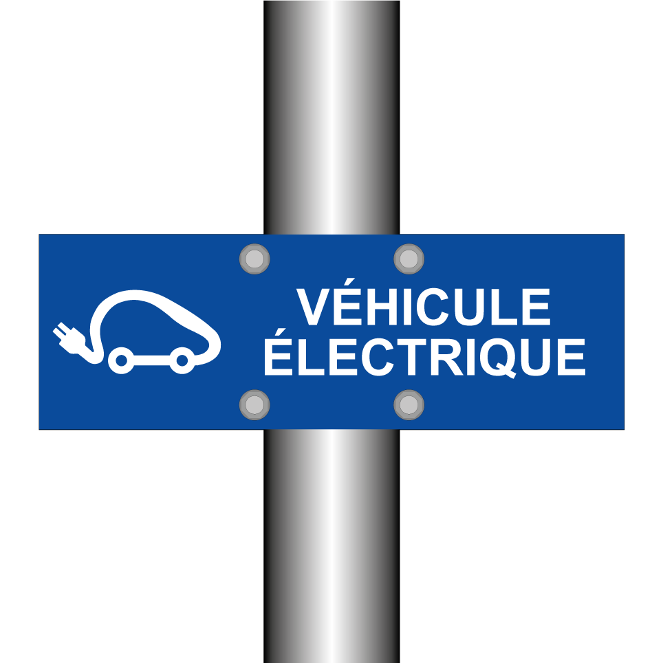 Panneau de stationnement avec le texte : "Véhicule électrique" et une symbolique claire.