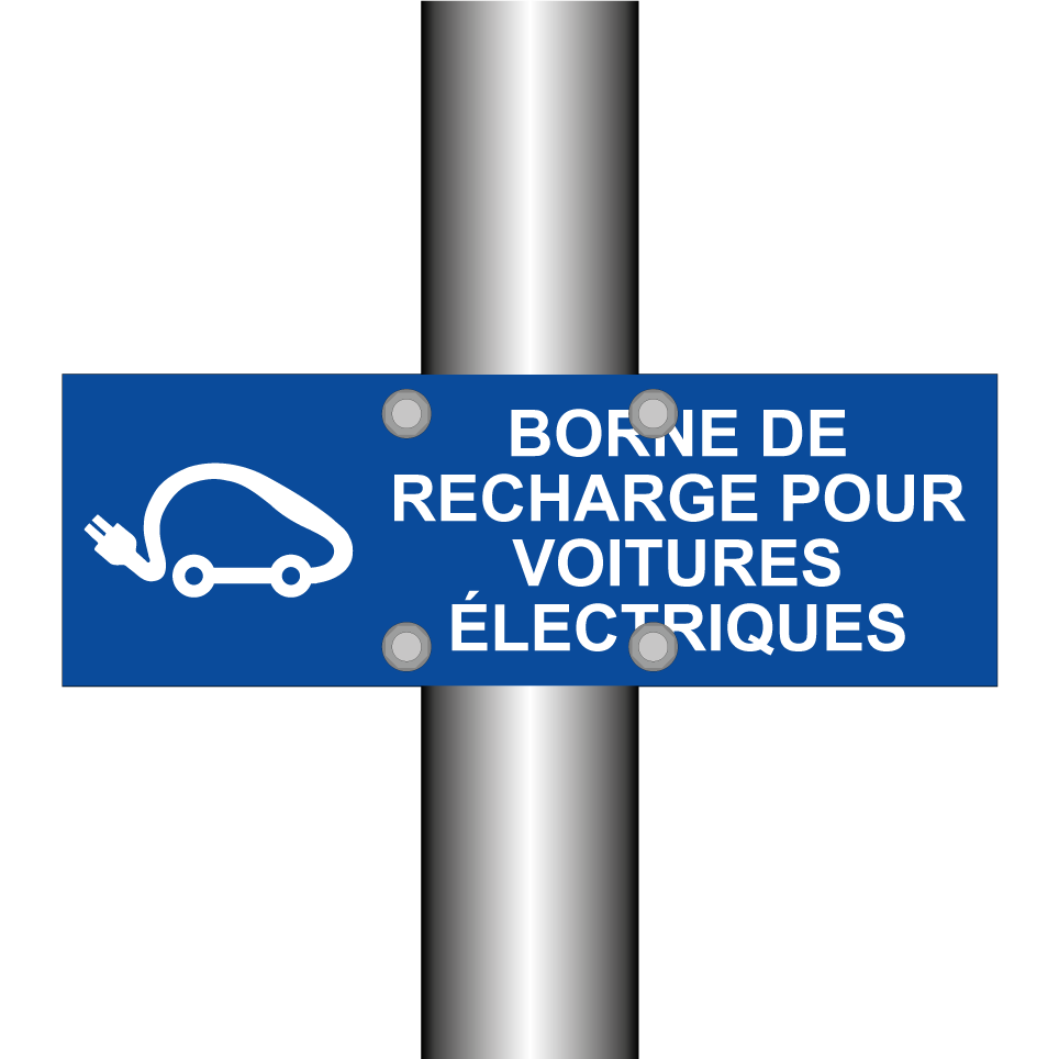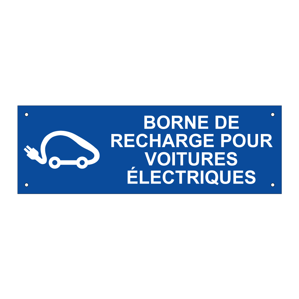 Panneau de stationnement avec le texte : "Borne de recharge pour voitures électriques" et une symbolique claire.