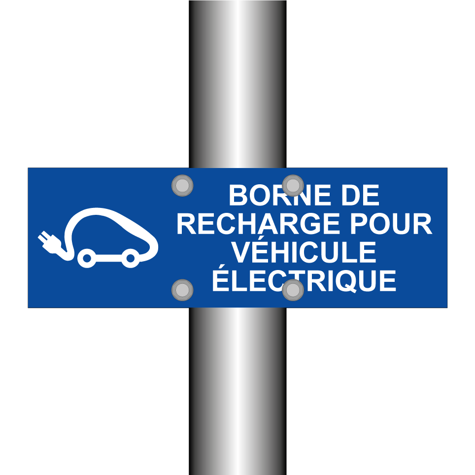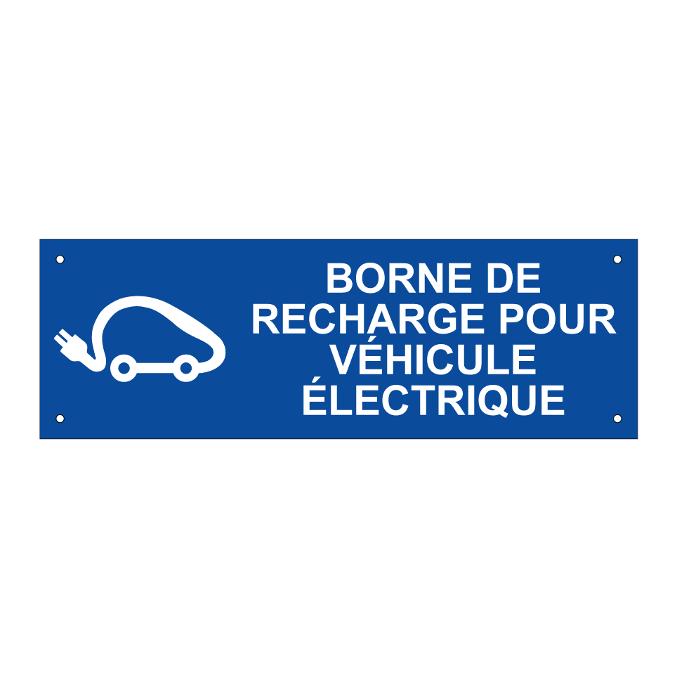 Panneau de stationnement avec le texte : "Borne de recharge pour véhicule électrique" et une symbolique claire.